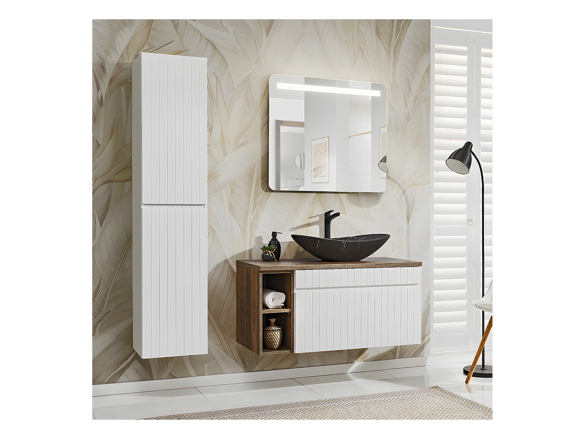Meuble simple vasque 100cm 2 niches Zelie Blanc Bois et Noir