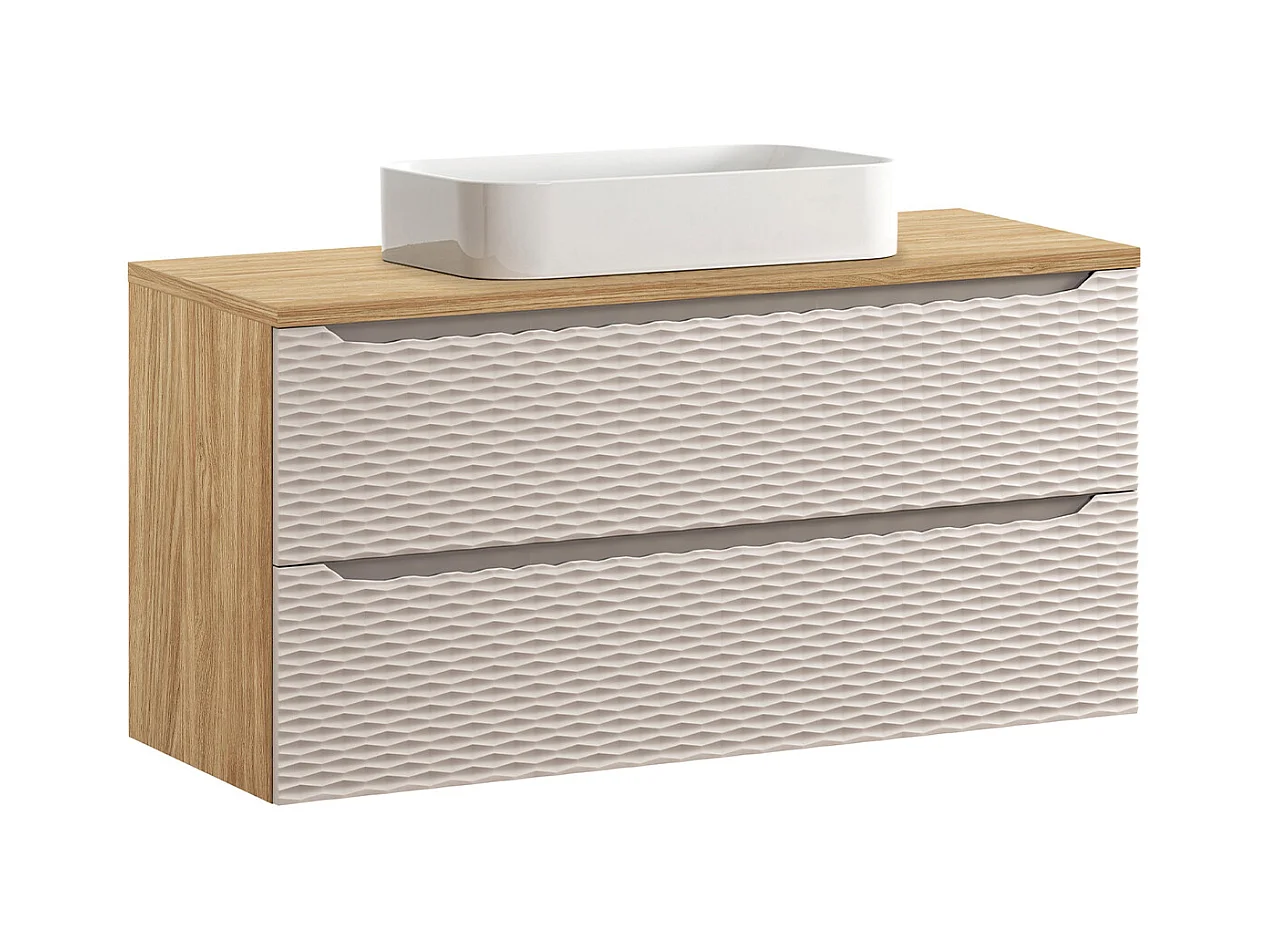 Meuble simple vasque 120cm 2 tiroirs Elora Beige et bois