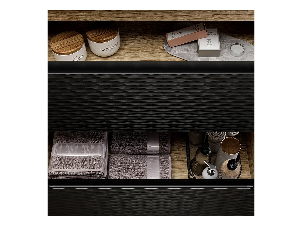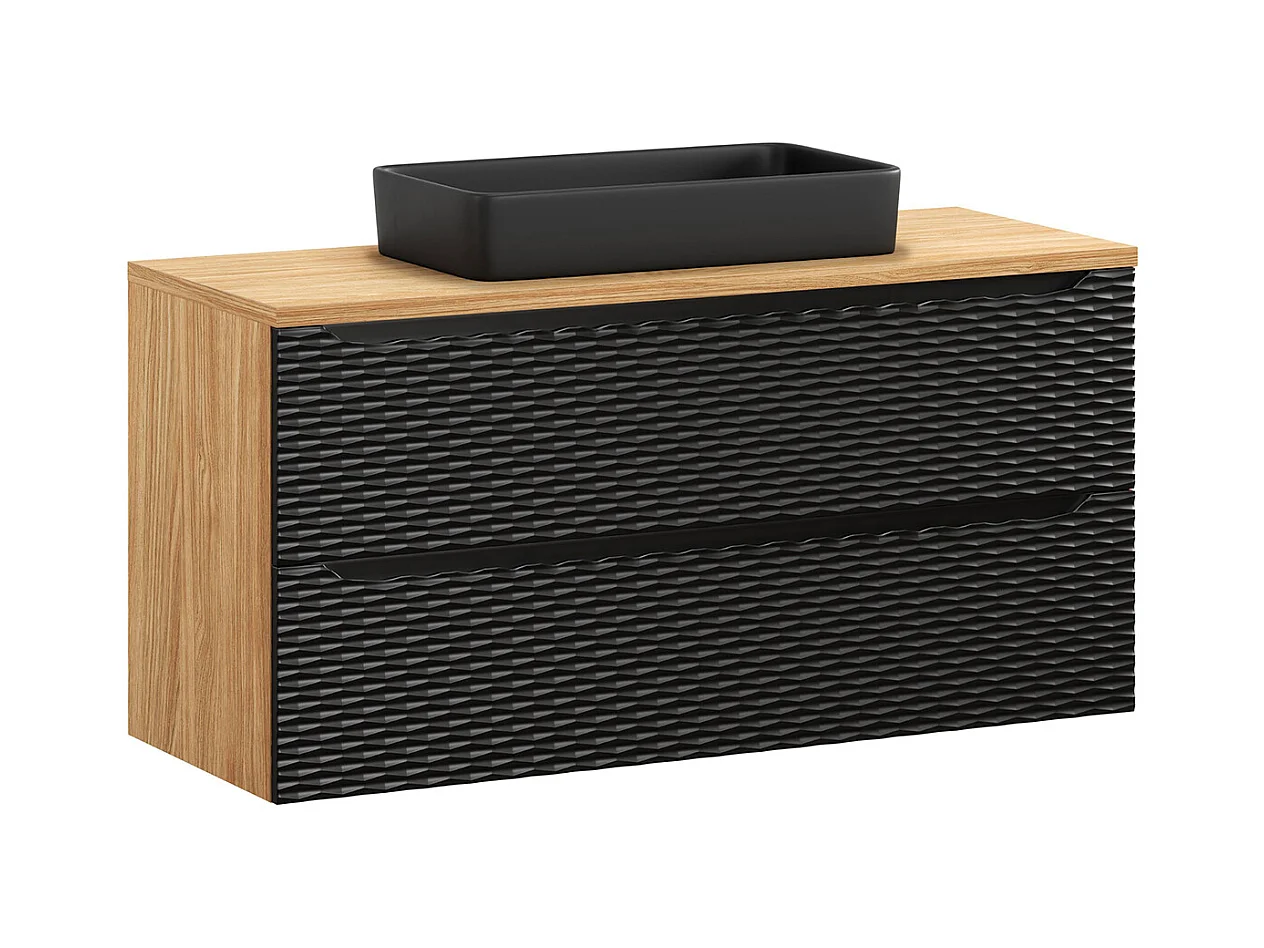 Meuble simple vasque 120cm 2 tiroirs Elora Noir et bois