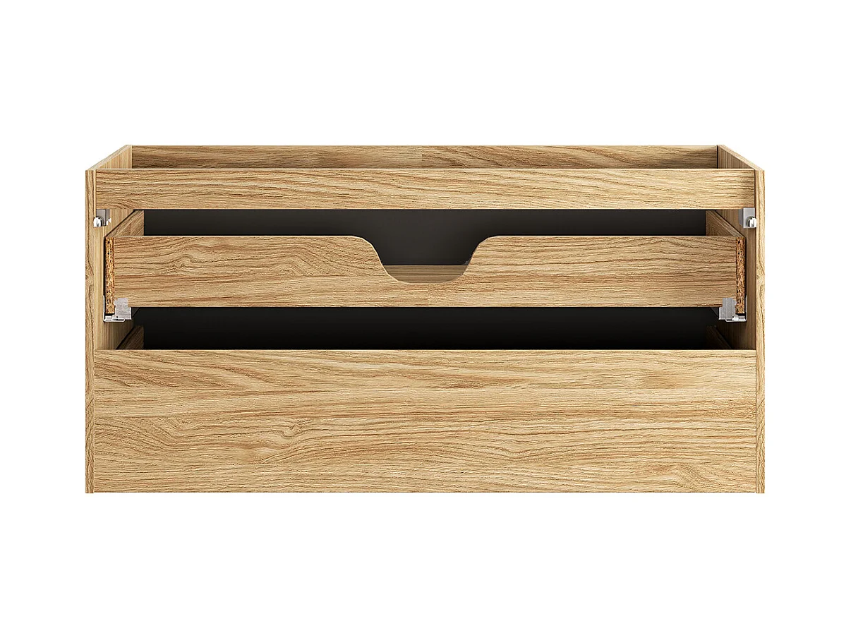 Meuble simple vasque encastrée 120cm 2 tiroirs Elora Noir et bois