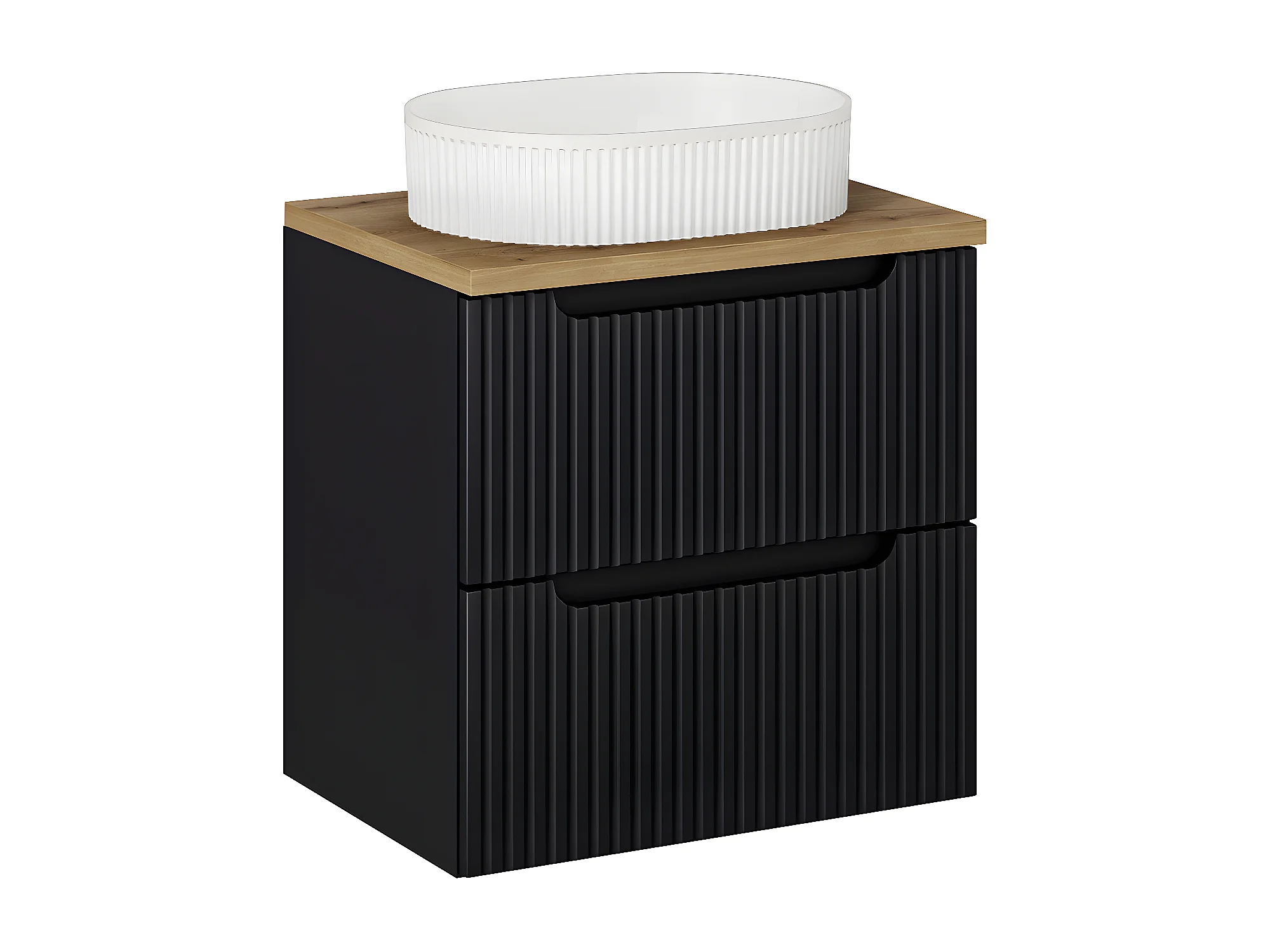 Meuble simple vasque 60cm 2 tiroirs Riva Noir et Bois