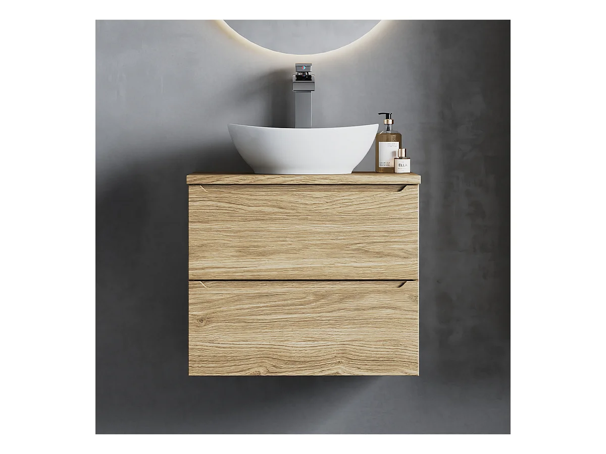 Ensemble pour salle de bain 60 cm Armoire avec plan de travail Lavabo Chêne huilé Etna