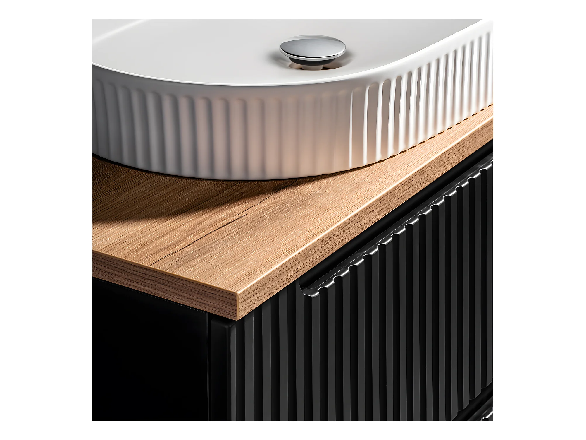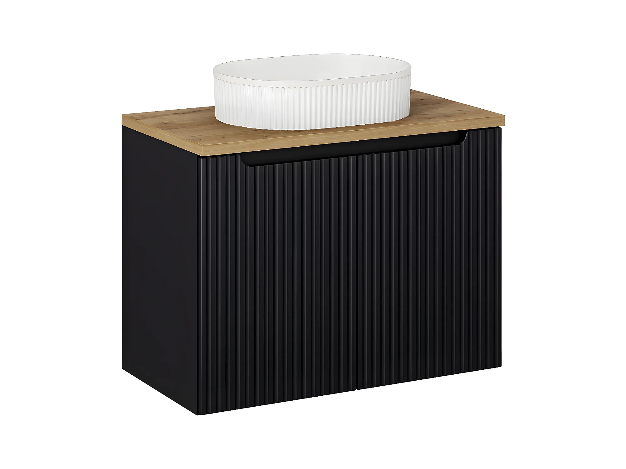 Meuble simple vasque 80cm 2 portes Riva Noir et Bois