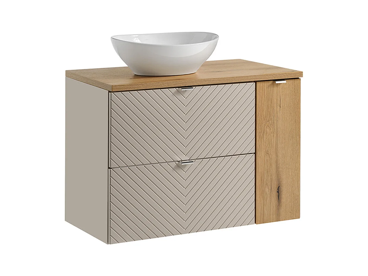 Meuble simple vasque encastrée 80cm 2 tiroirs Riva Cachemire