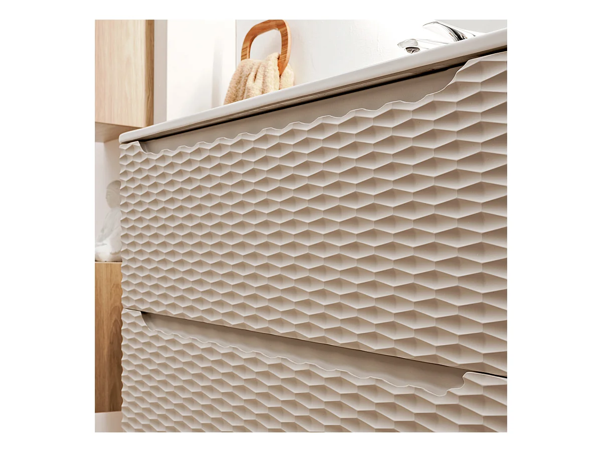 Meuble simple vasque 140cm 3 niches panier à linge Alba Cachemire