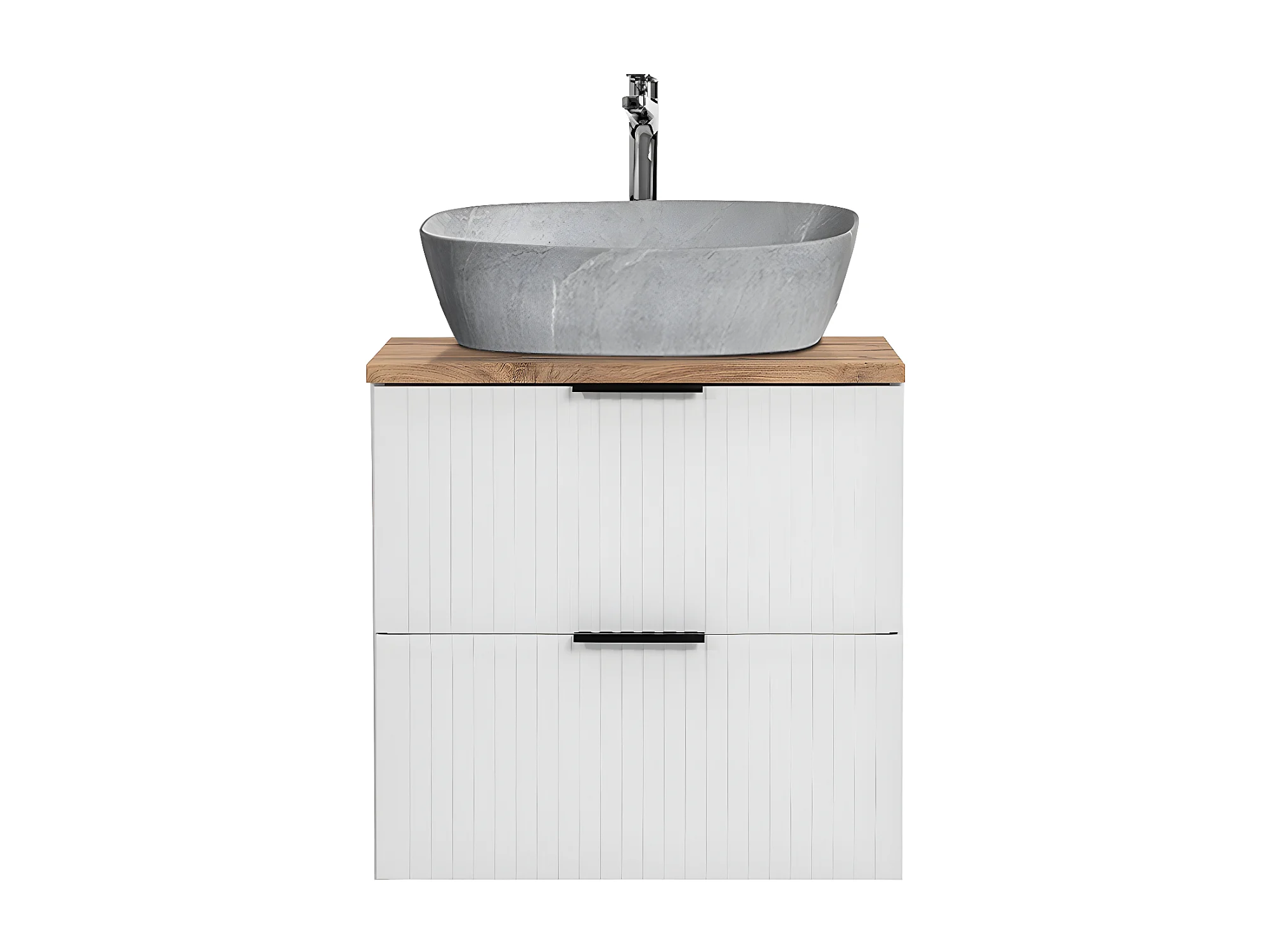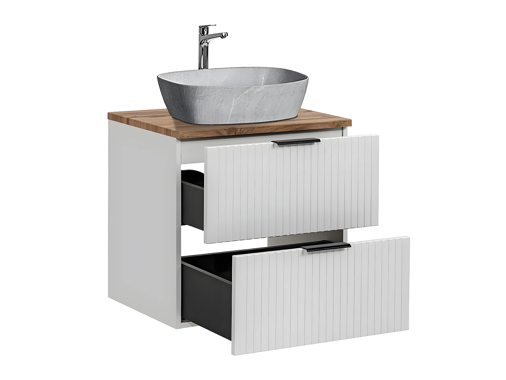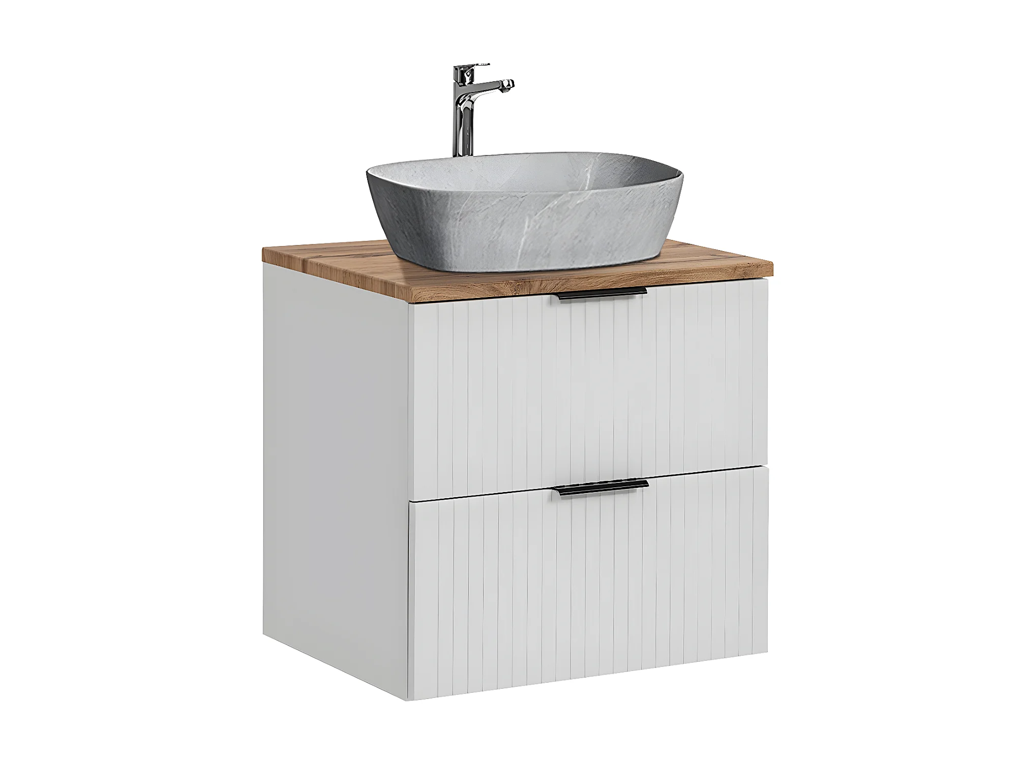 Meuble simple vasque 60cm 2 tiroirs Livia Blanc et Bois