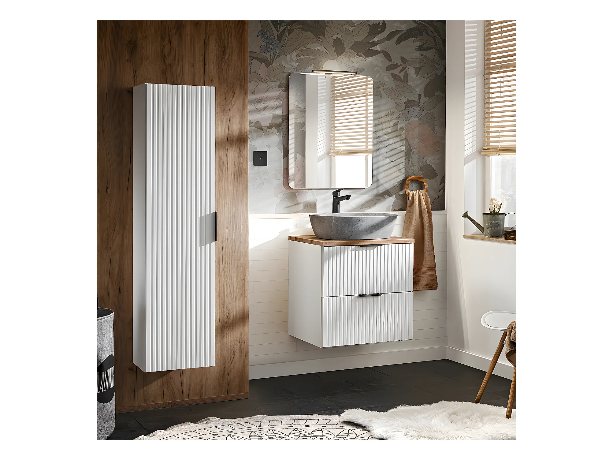 Meuble simple vasque 60cm 1 tiroir Livia Blanc et Bois