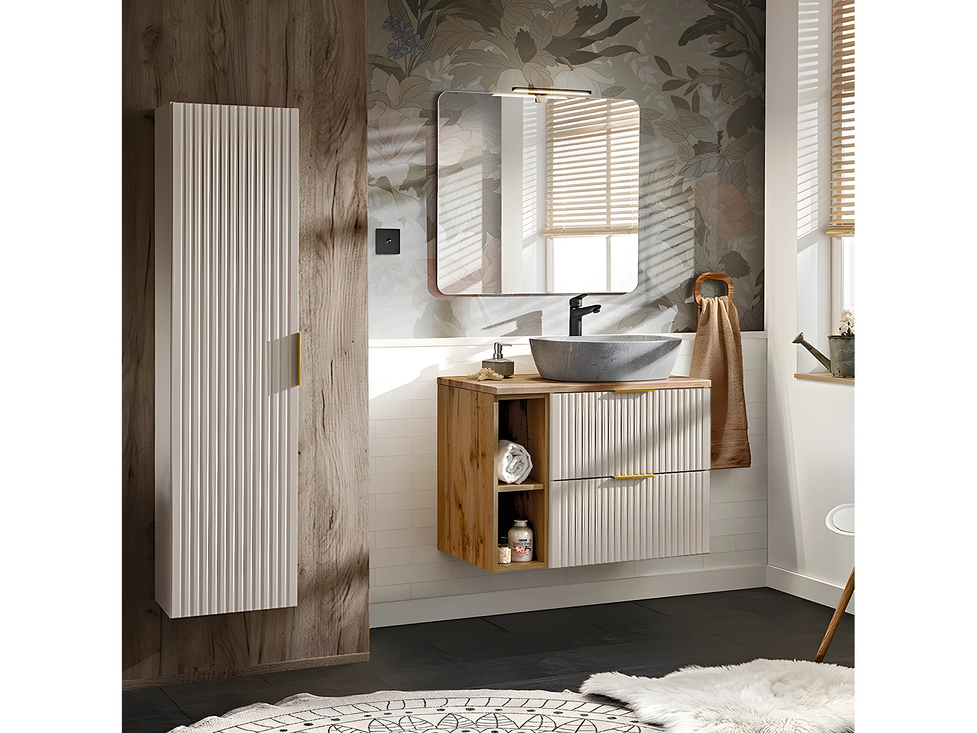 Colonne de salle de bain suspendue - Coloris naturel clair - H170 cm - PURNAL
