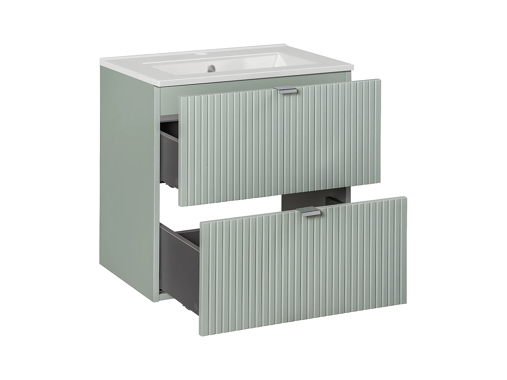 Meuble simple vasque encastrée 60cm 2 tiroirs Jade Vert