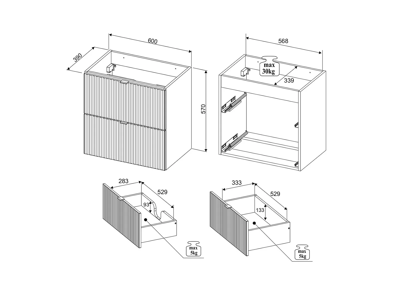 Meuble simple vasque 60cm 2 tiroirs Riva Noir et Bois