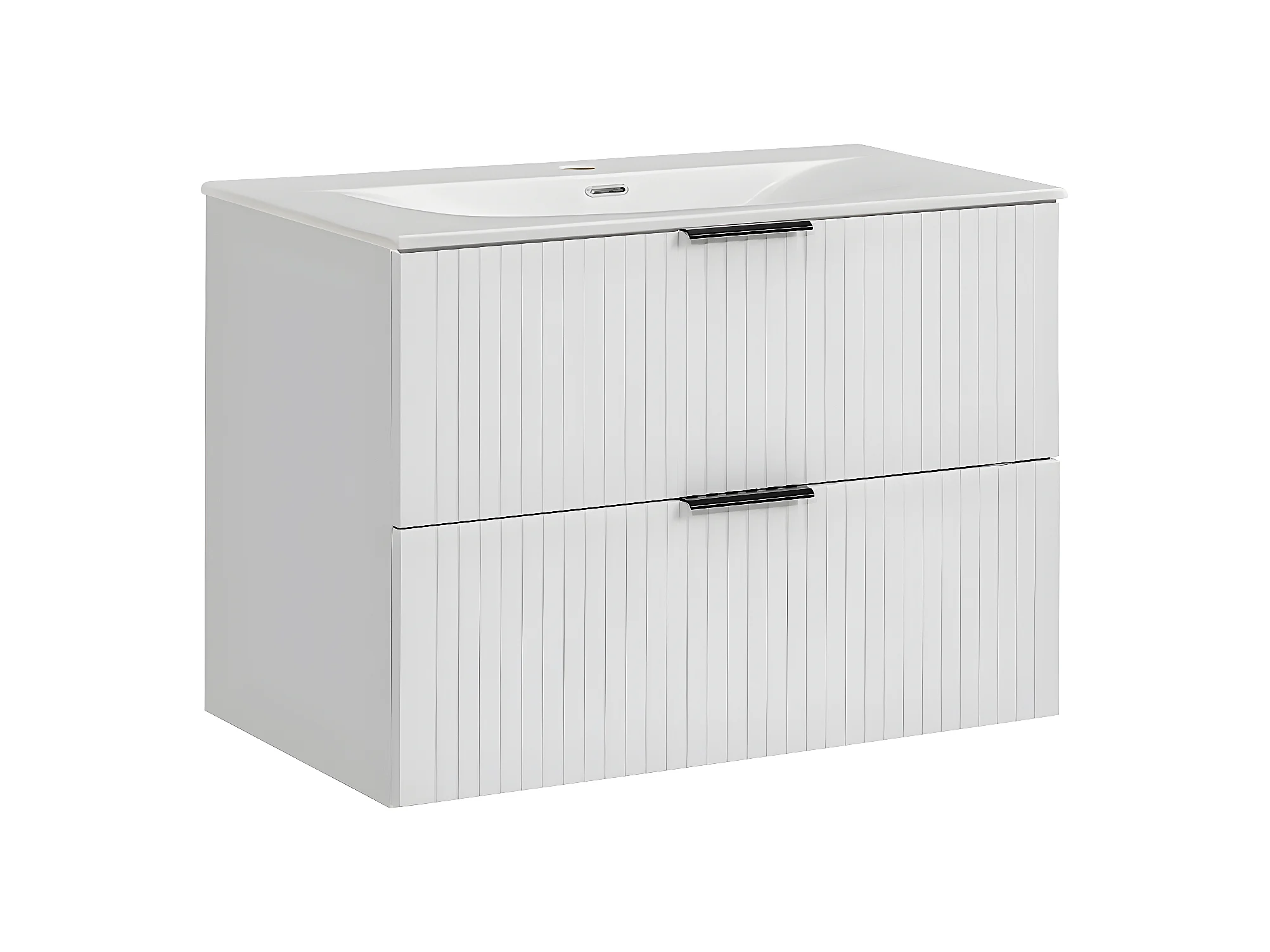 Meuble simple vasque effet pierre 80cm Adriel Blanc