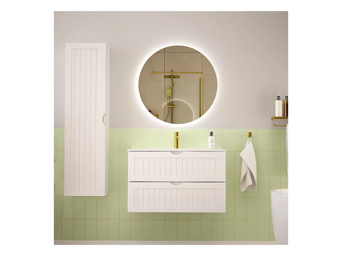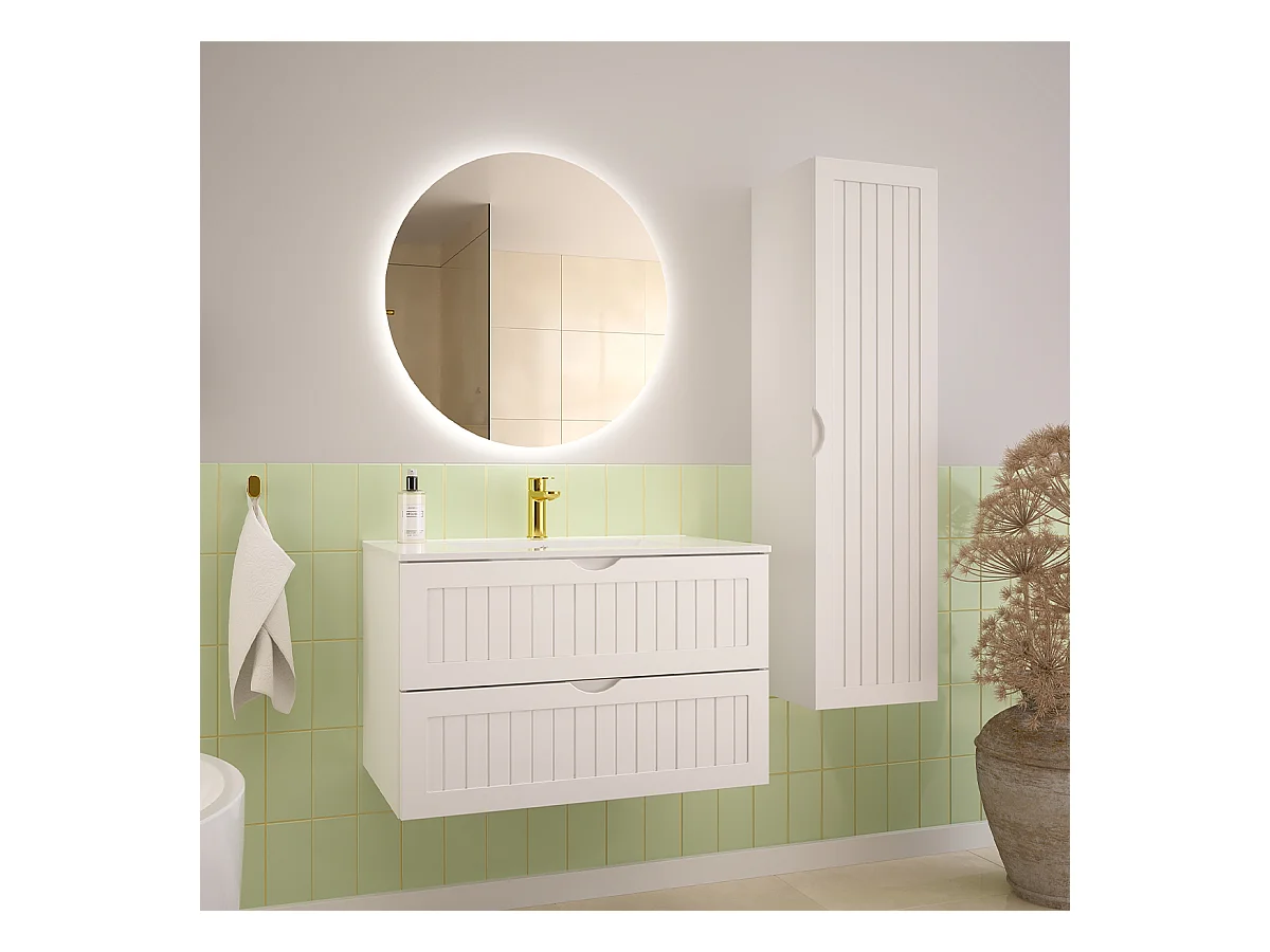 Colonne de salle de bain suspendue striée - Blanc mat - H140 cm - ZEVINI