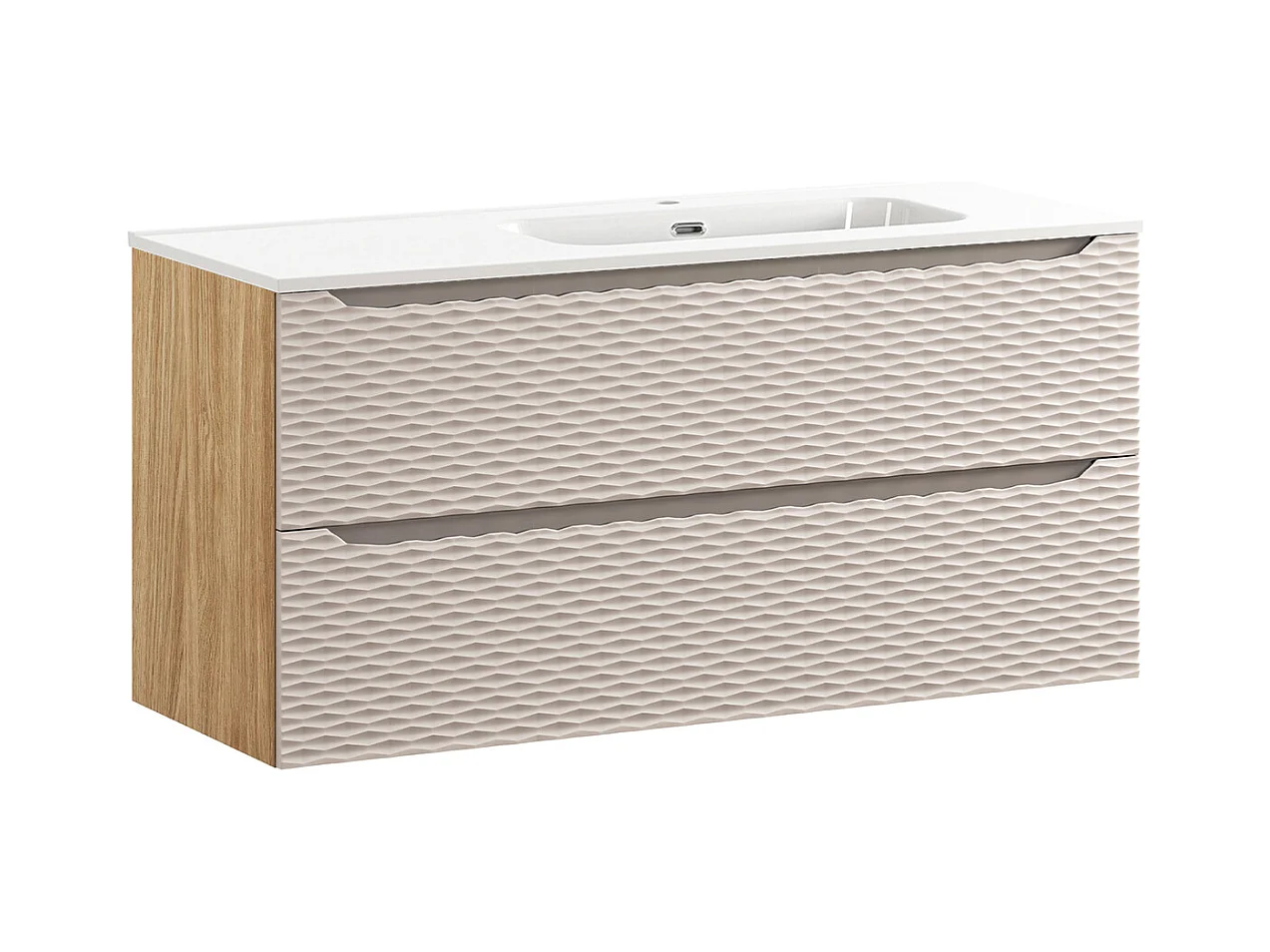Meuble simple vasque encastrée gauche 120cm 2 tiroirs Elora Beige et bois