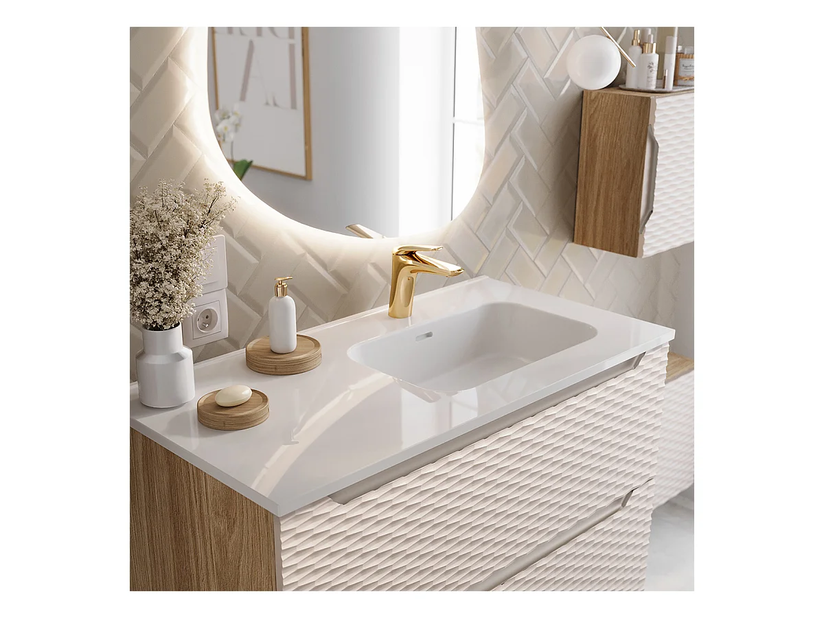 Meuble simple vasque encastrée gauche 90cm Elora Beige et bois