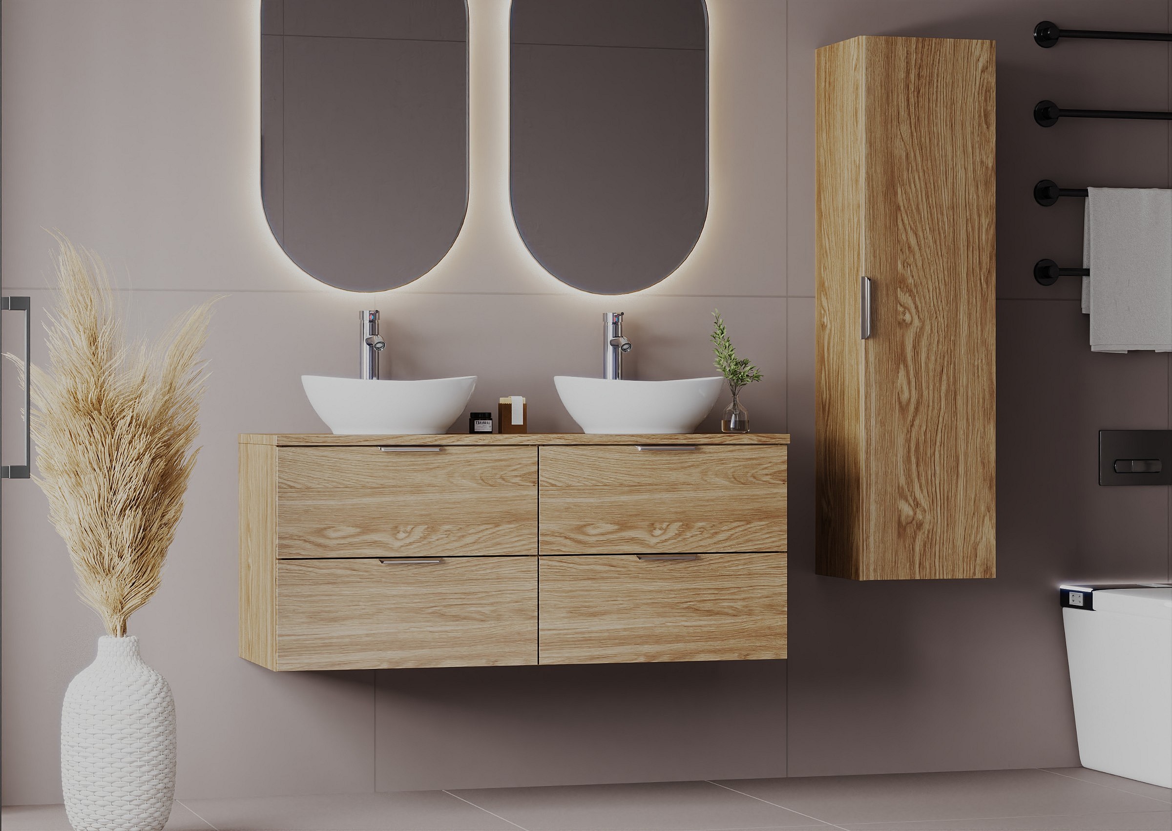 Meuble sous lavabo 60 cm 2 tiroirs Chêne huilé Pile