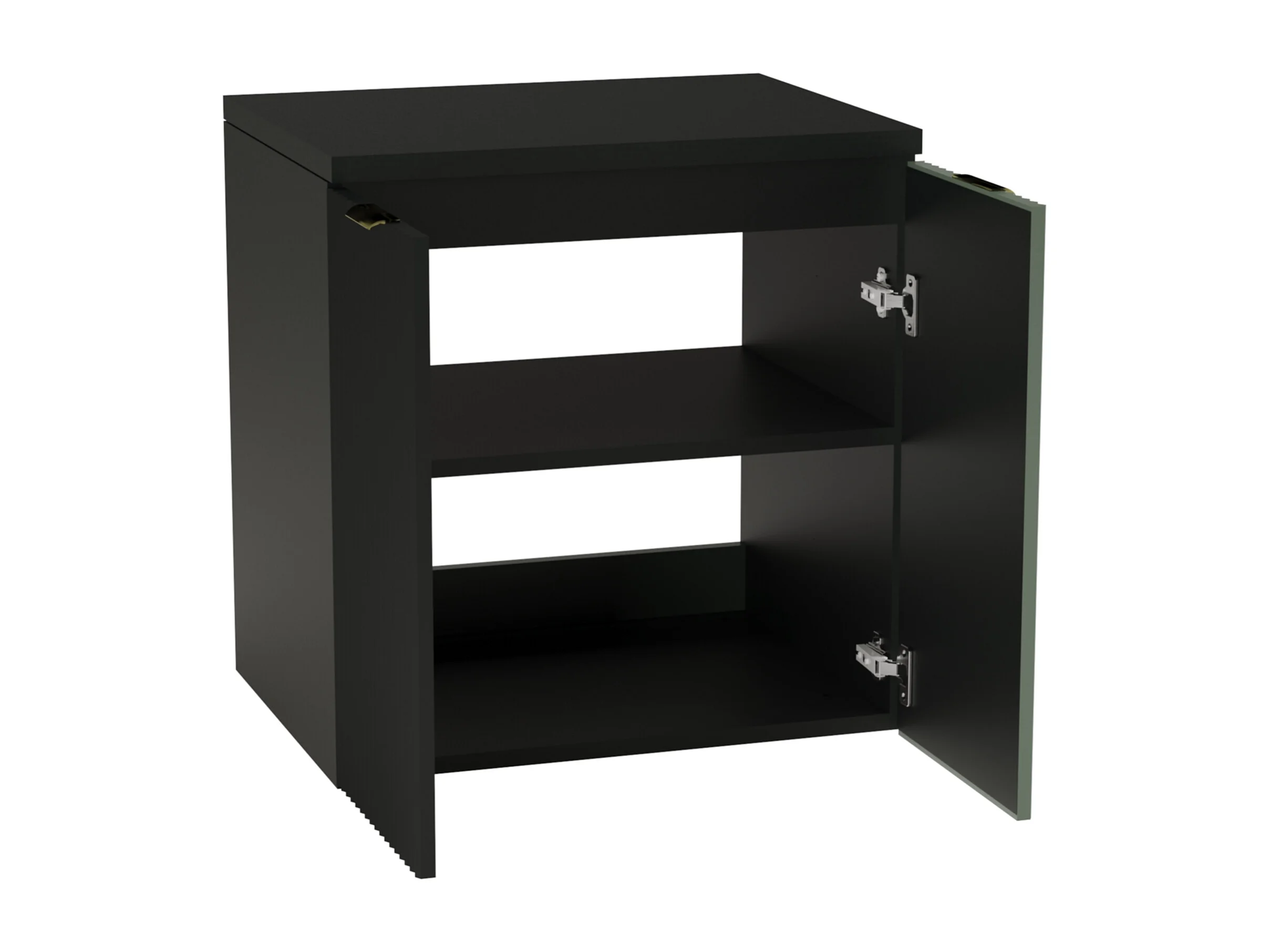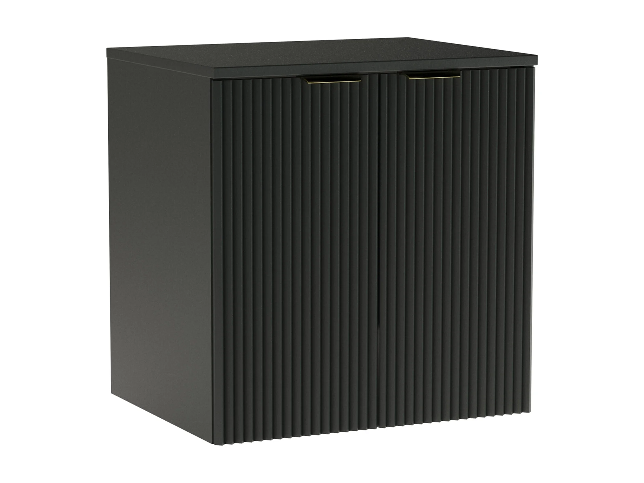 Meuble sous lavabo avec plateau 60 cm, 2 portes, façades rainurées, noir
