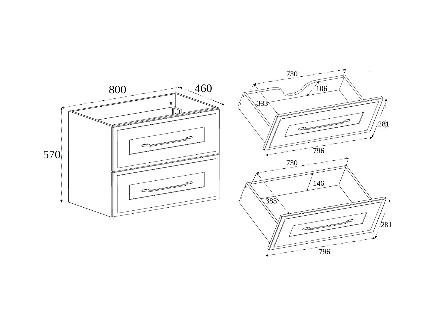 Meuble sous lavabo de style classique, noir, 80 x 57 x 46 cm