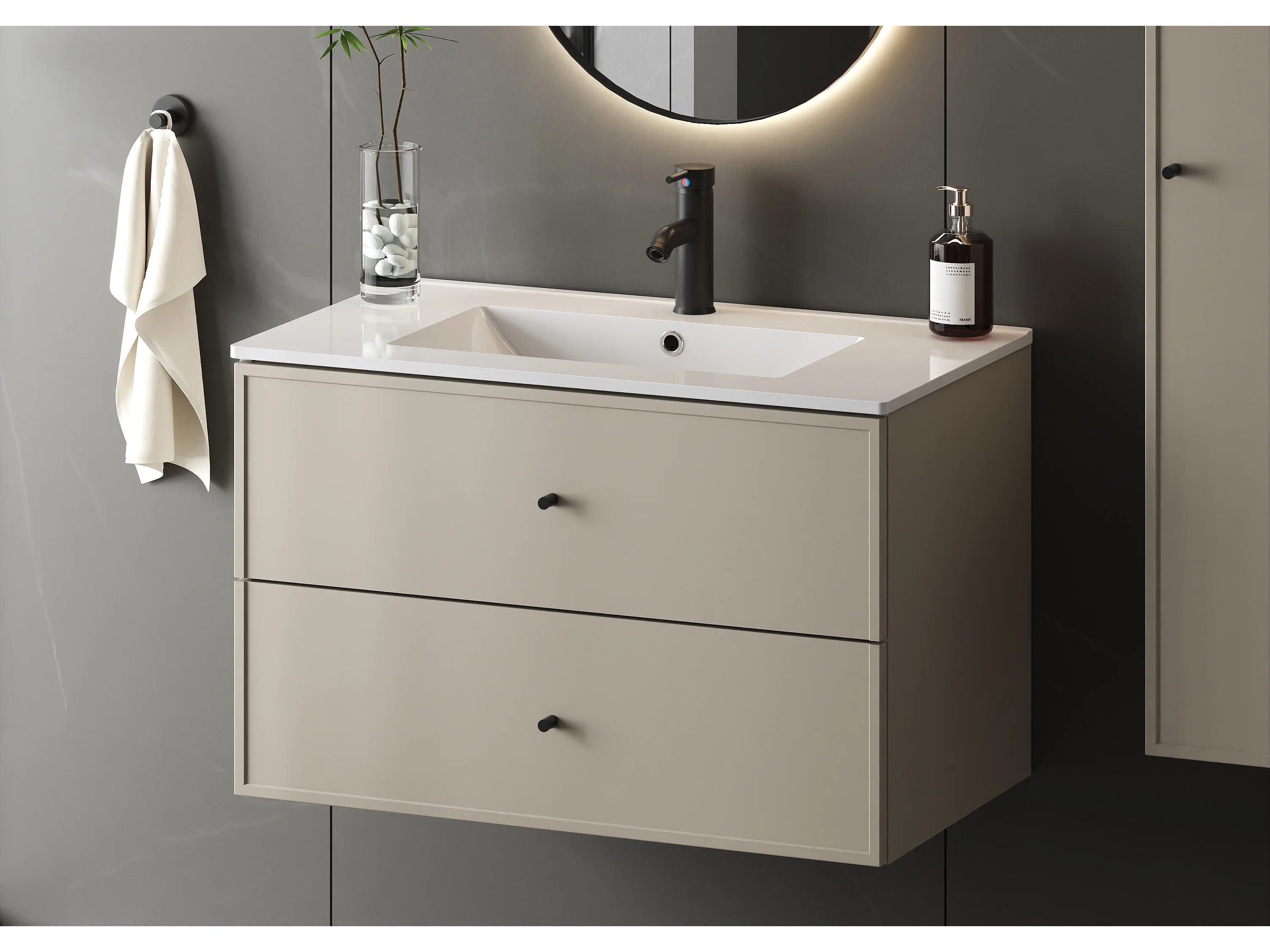 Meuble sous lavabo en cachemire 80 cm 2 tiroirs Marco