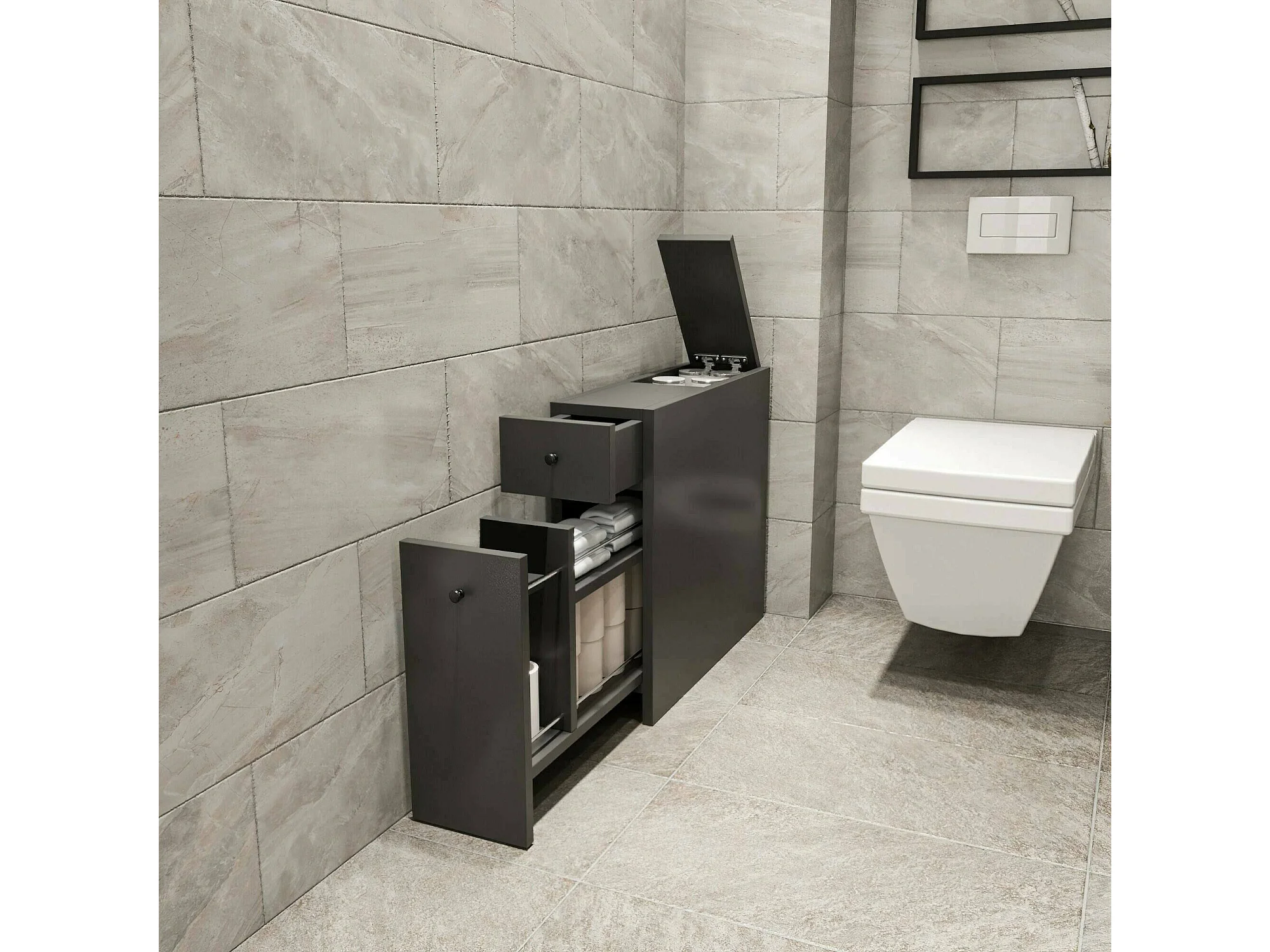 Meuble sous lavabo Galene, Armoire de toilette, Récipient pour lavabo, Meuble d'évier, 20x60h55 cm, Anthracite