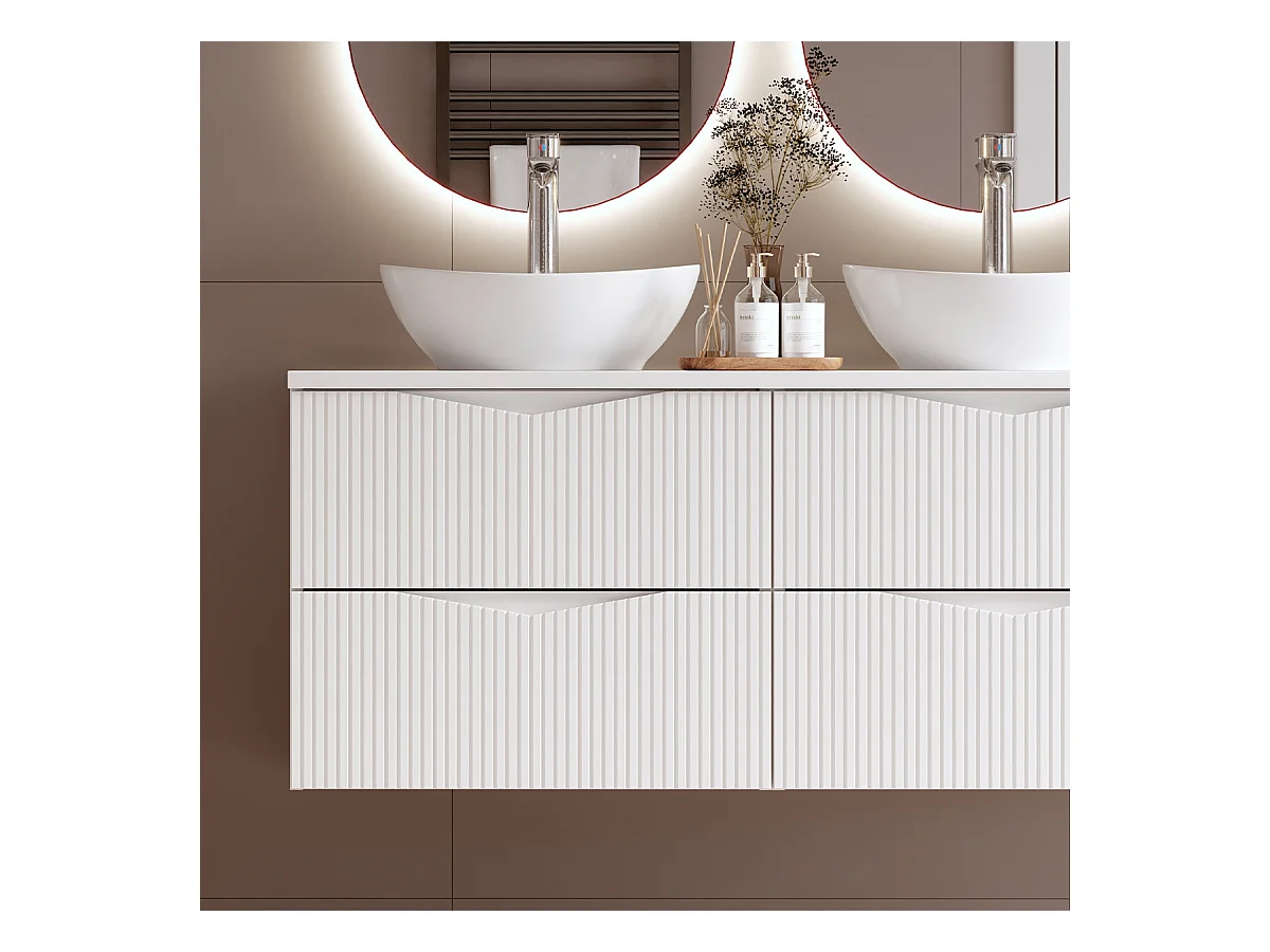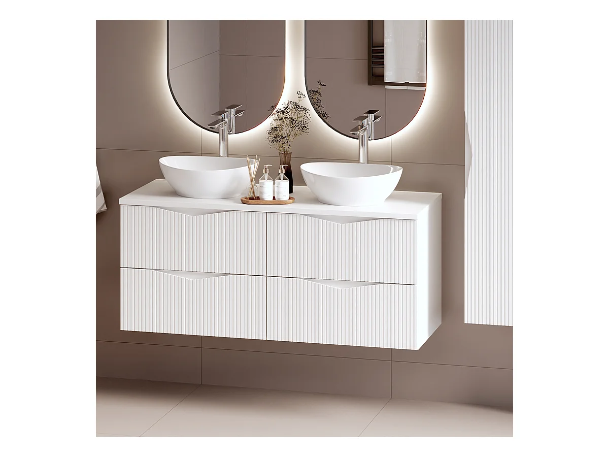 Ensemble de salle de bain blanc 120 cm Armoire avec plateau Façades rainurées Aqua