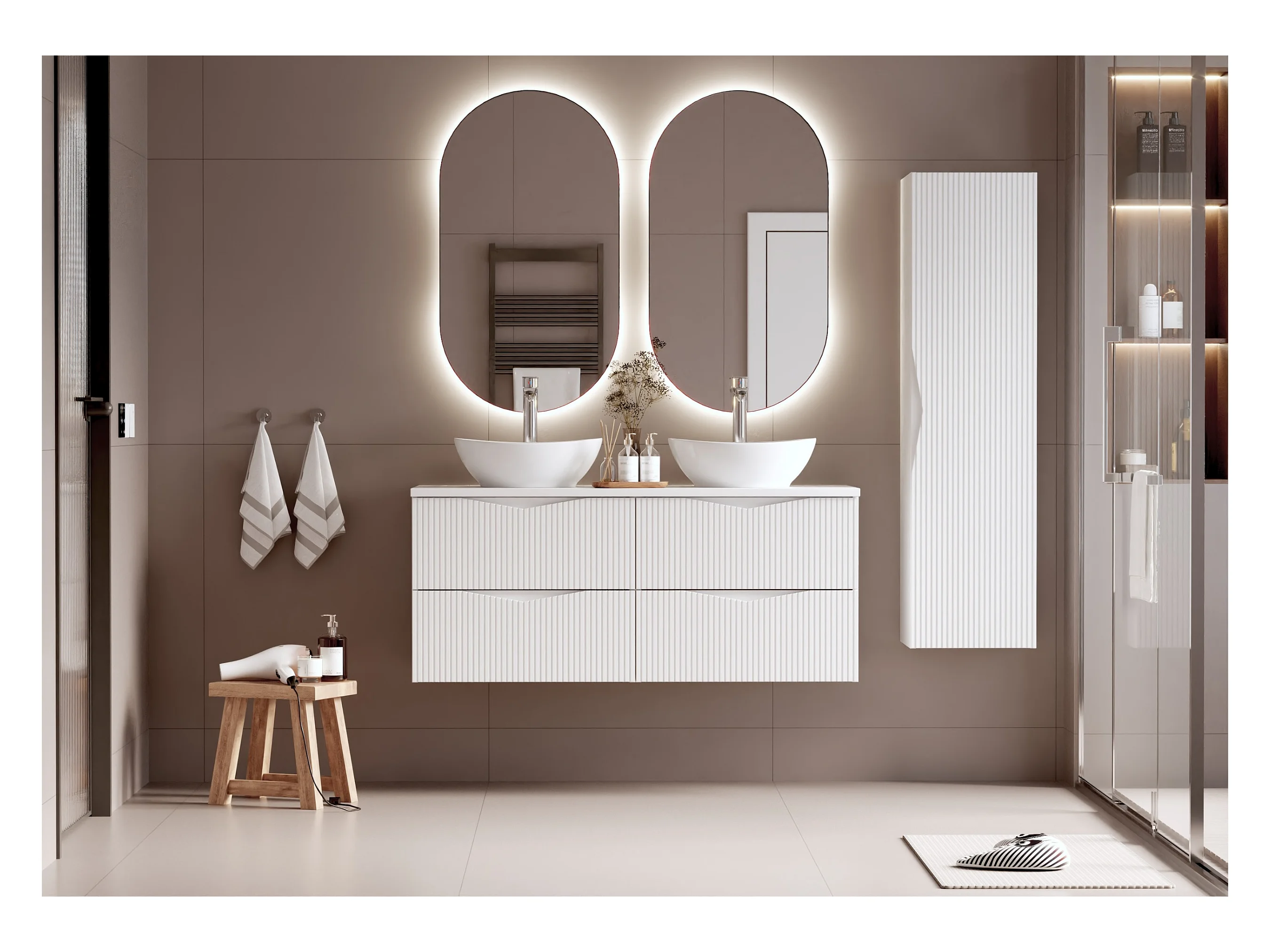 Colonne de salle de bain suspendue striée - Blanc mat - H140 cm - ZEVINI