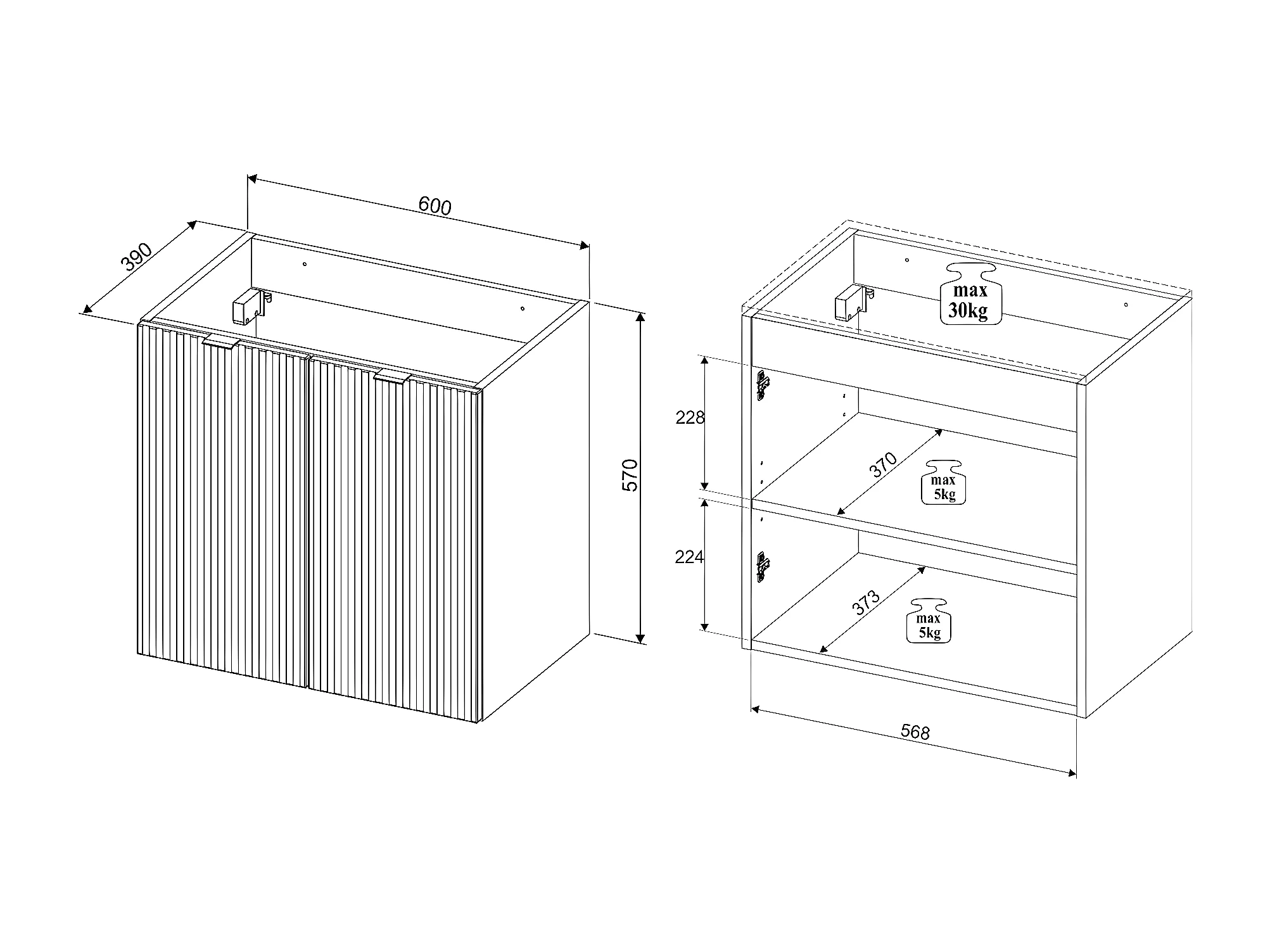 Meuble sous-vasque 60cm 2 portes plan de toilette Jade Vert et Bois