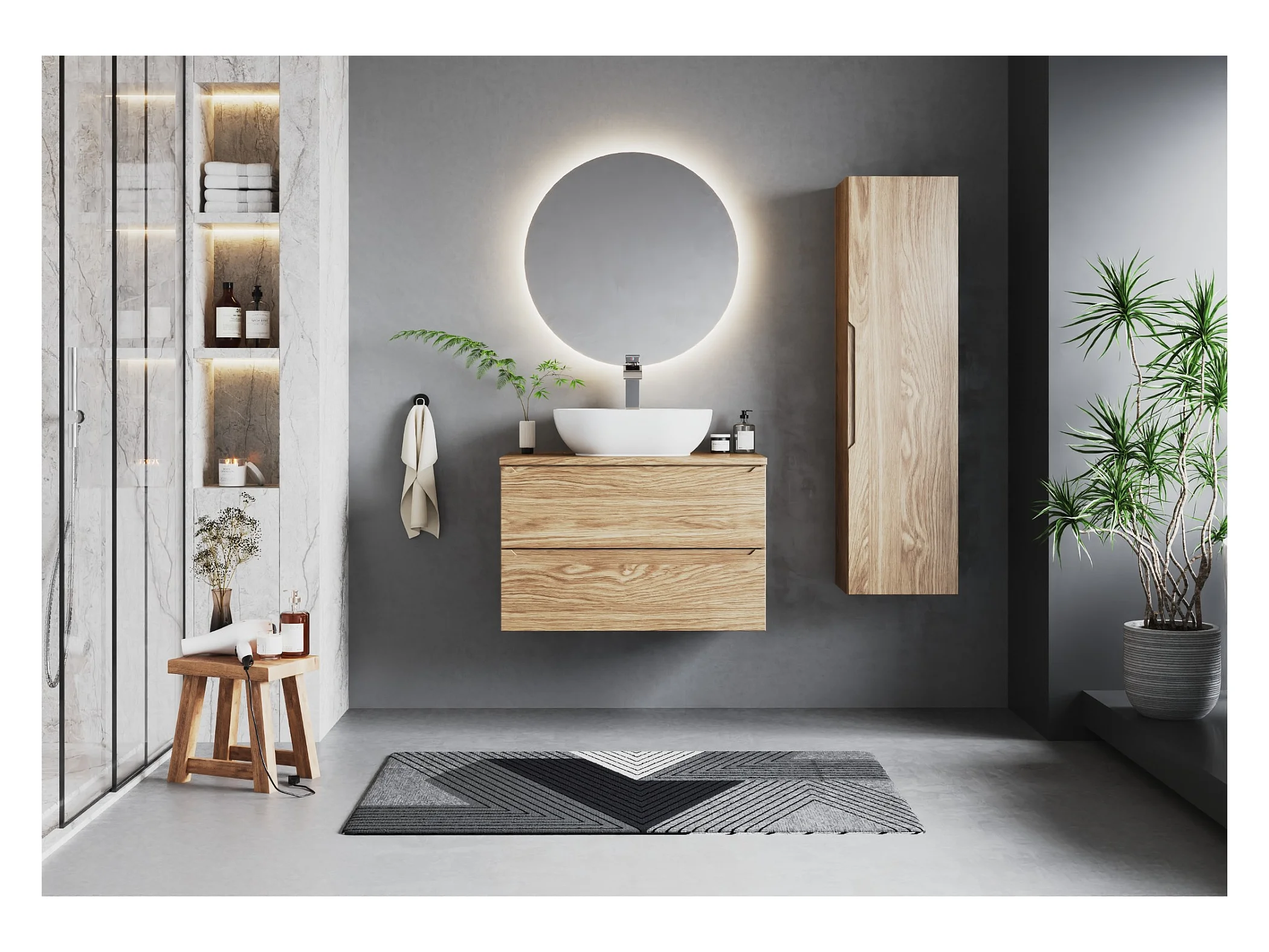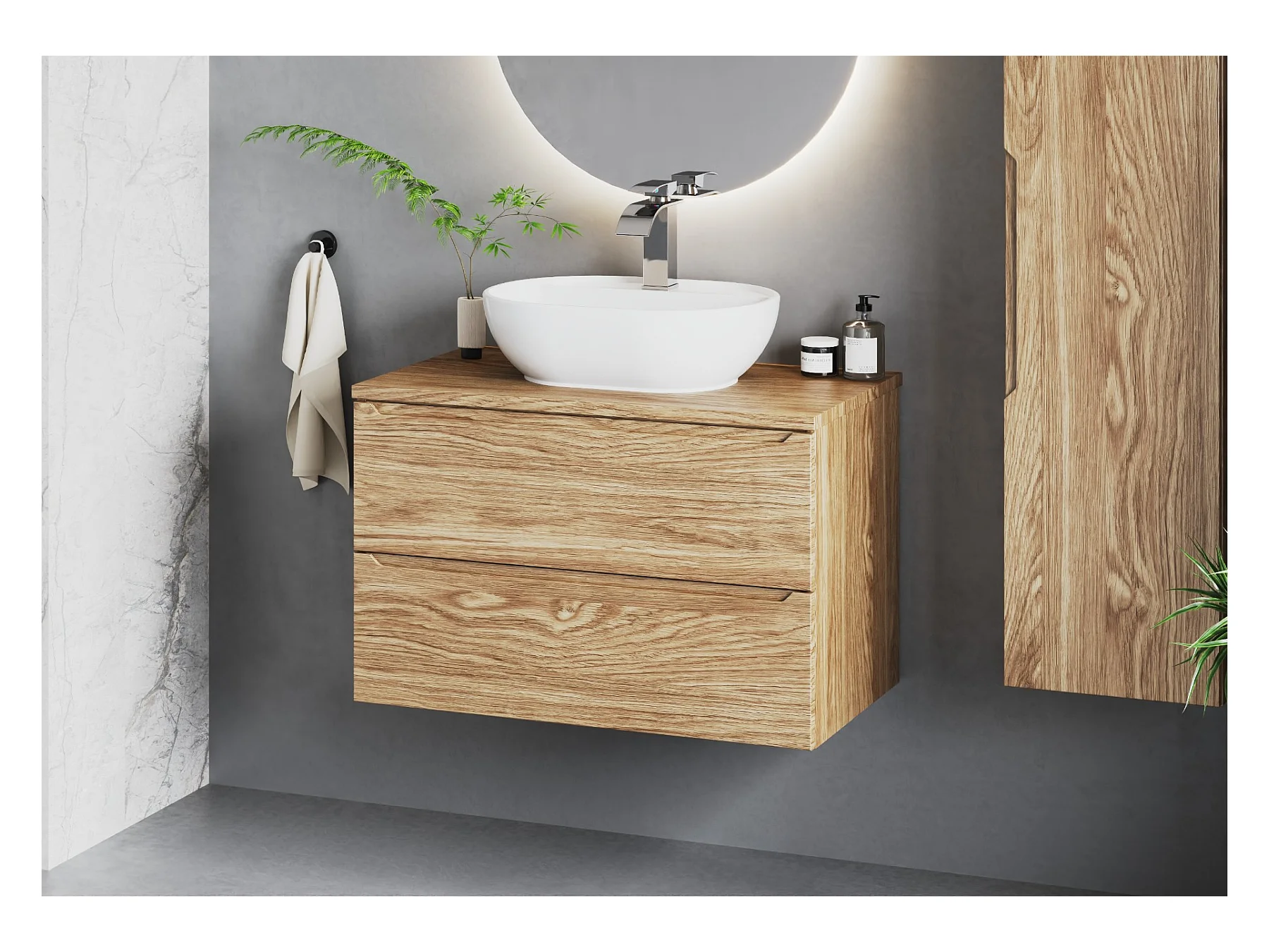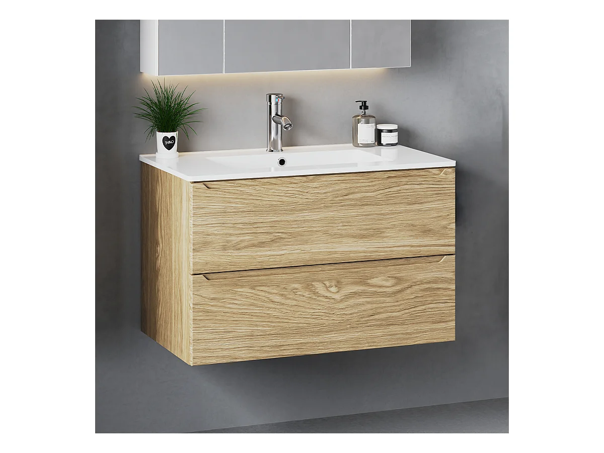 Meuble sous lavabo 80 cm, 2 tiroirs, chêne huilé Etna