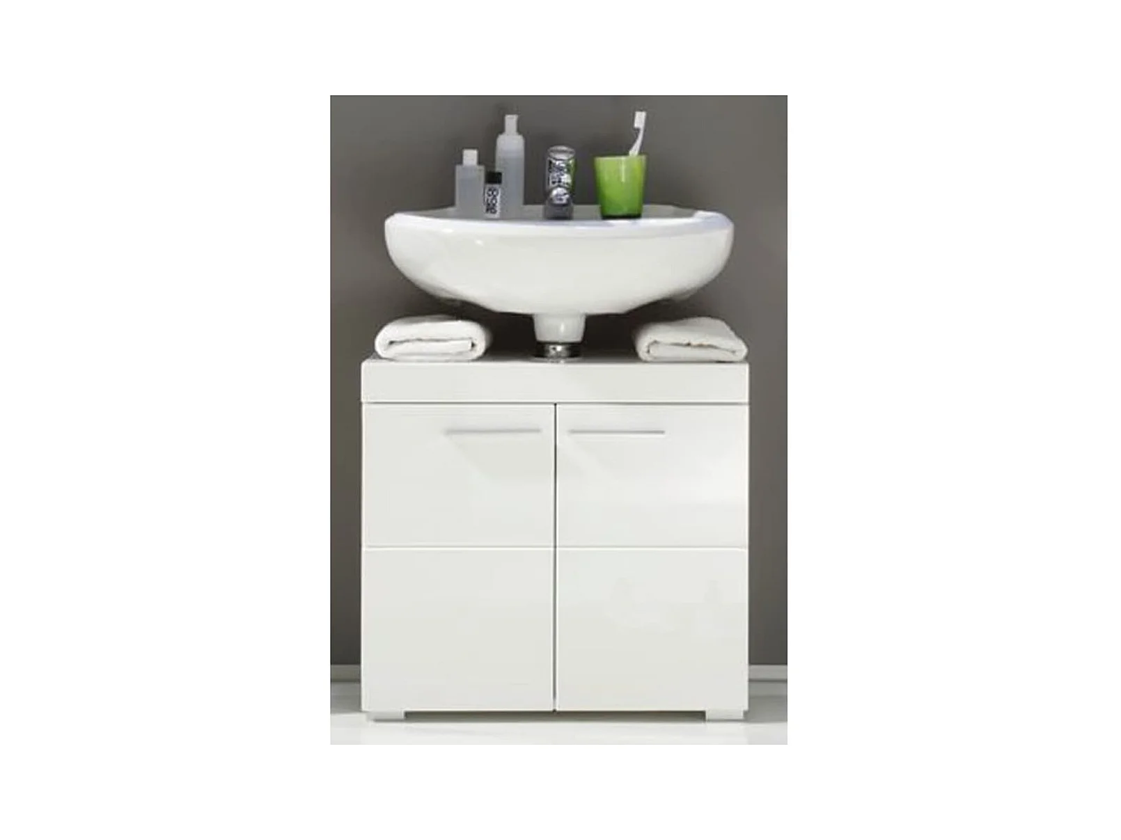 Ensemble de salle de bain blanc 60 cm Meuble avec lavabo Façades rainurées Aqua