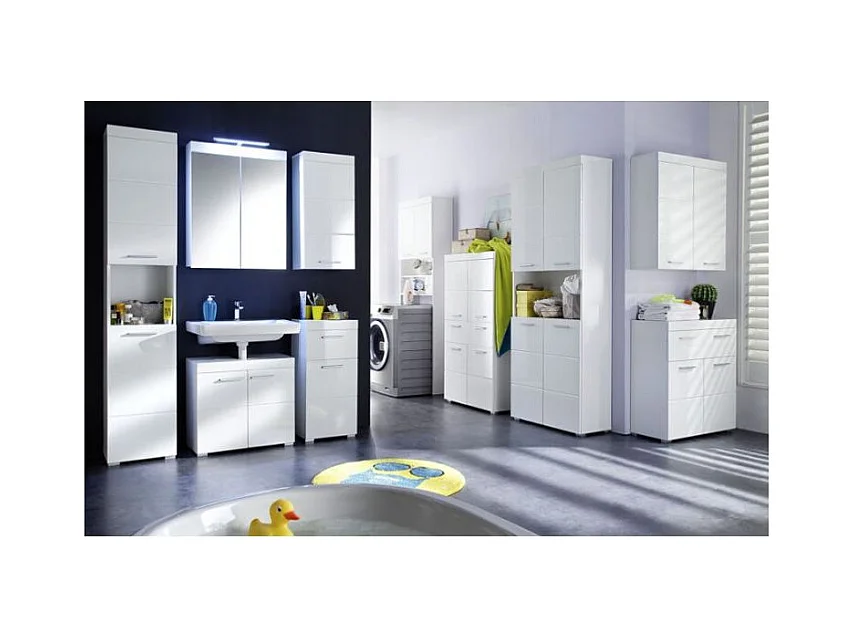 Armoire lavabo de salle de bain avec bassin intégré blanc