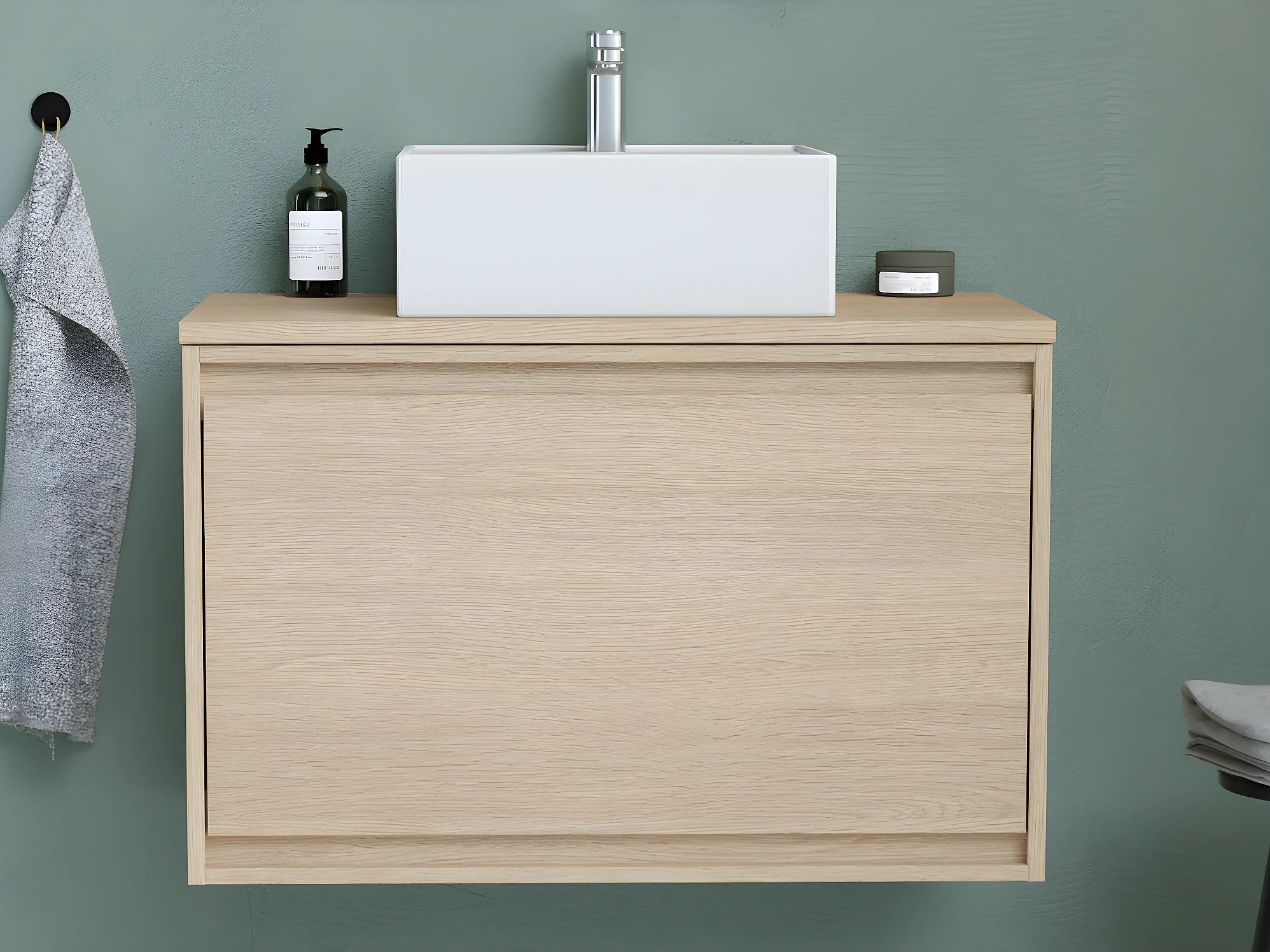 Meuble sous vasque avec tiroir à l'anglaise et planche - 80 cm - Placage chêne - MESLIVA