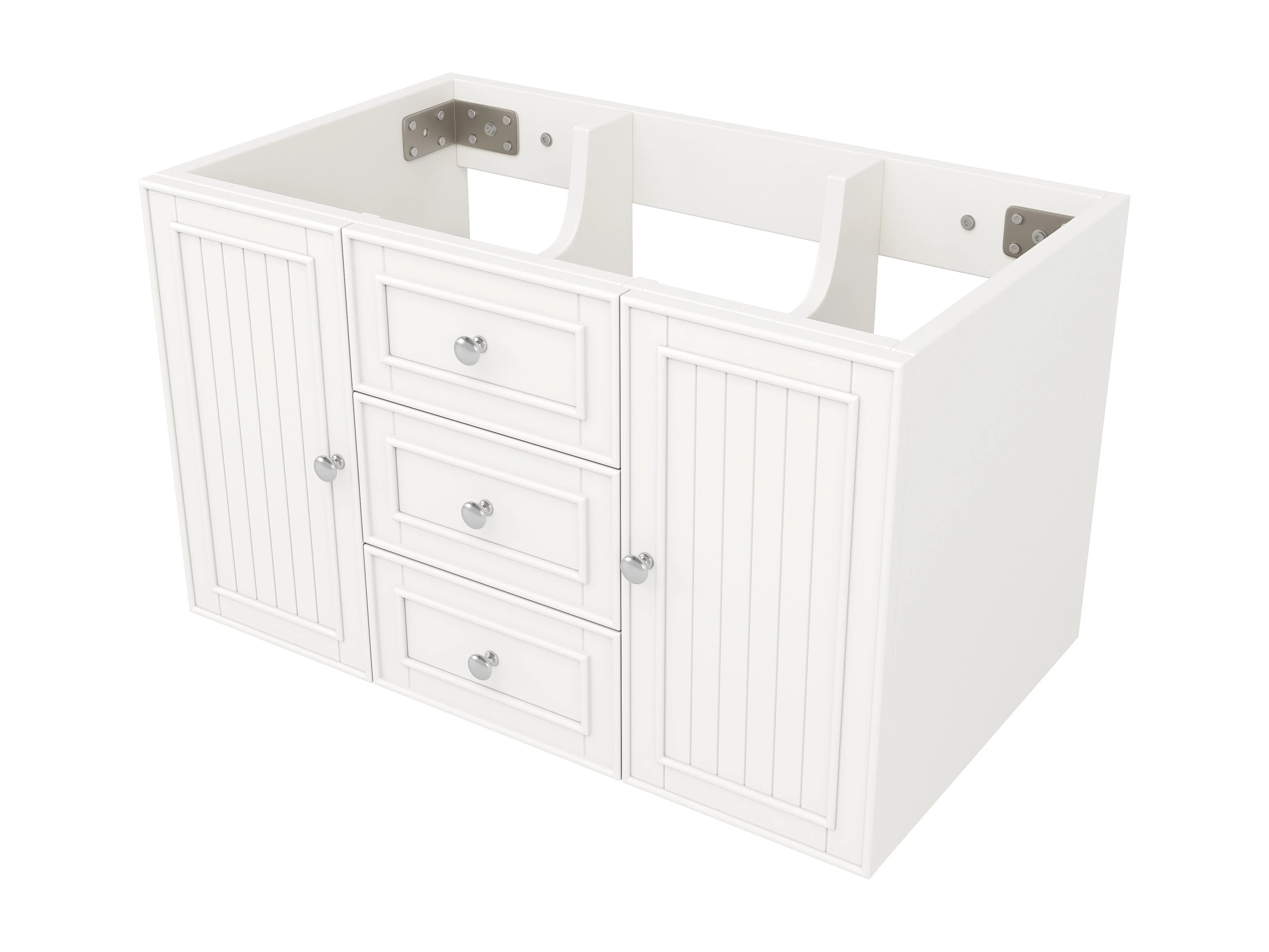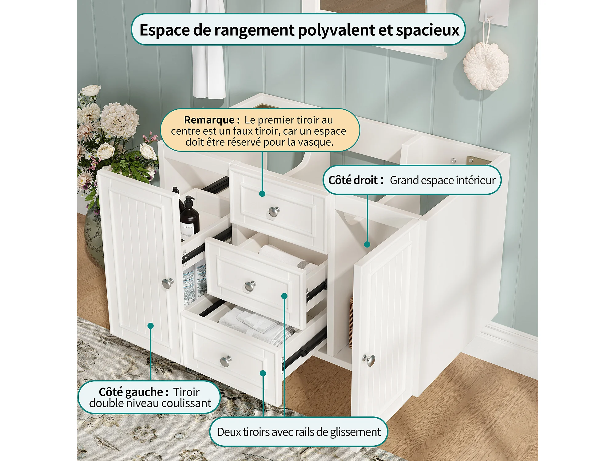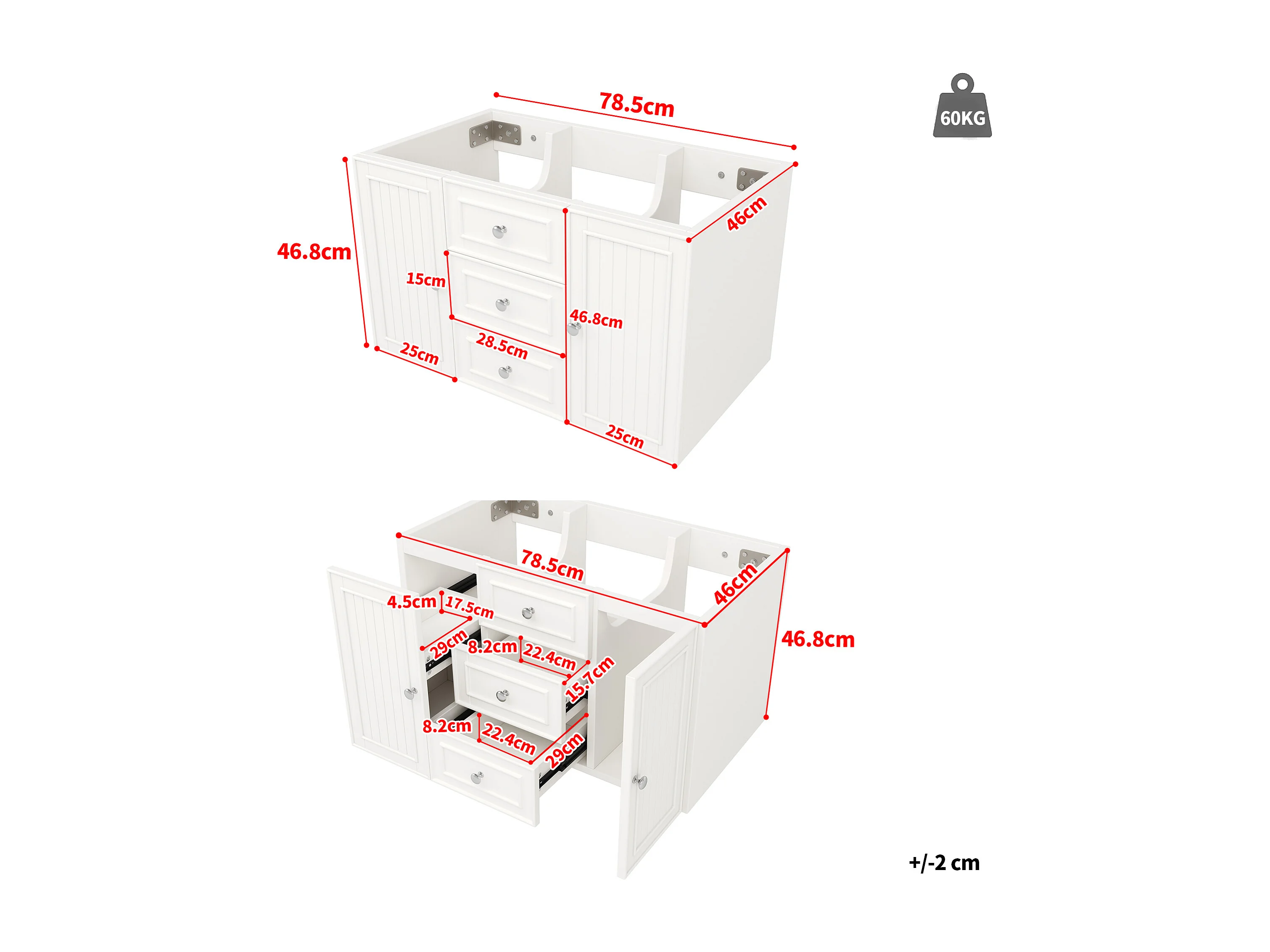 Meuble sous vasque de salle de bain suspendu avec 3 tiroirs et porte, MDF blanc - L78.5cm