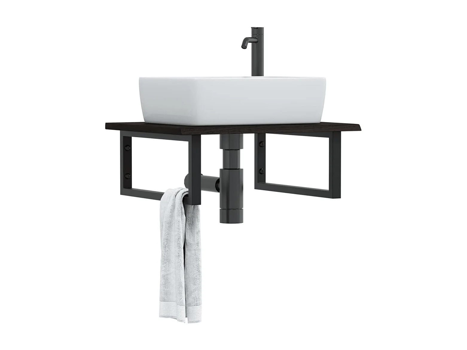Meuble sous vasque murale acier et bois massif d'acacia FR159021