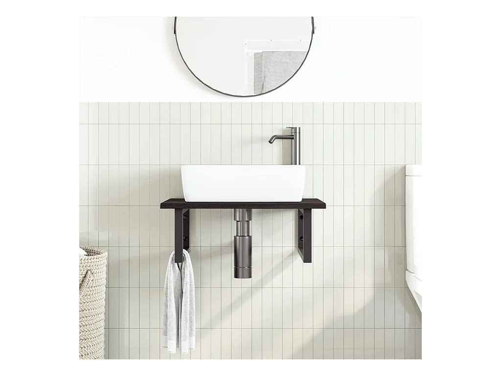Meuble sous vasque murale acier et bois massif d'acacia FR252523