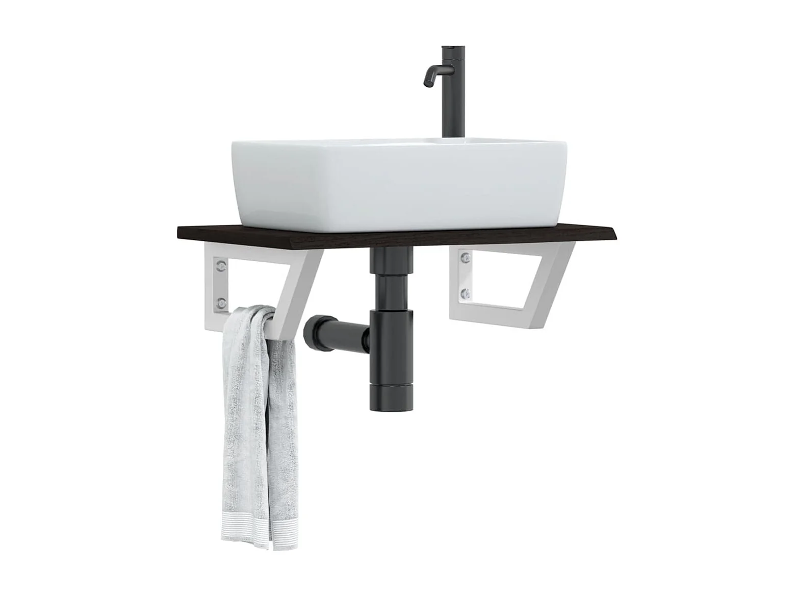 Meuble sous vasque murale acier et bois de chêne massif FR919581