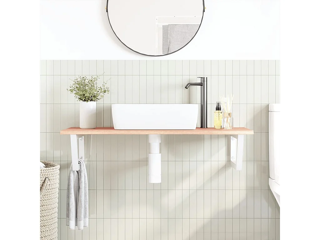 Meuble sous vasque murale acier et bois massif de hêtre FR589893