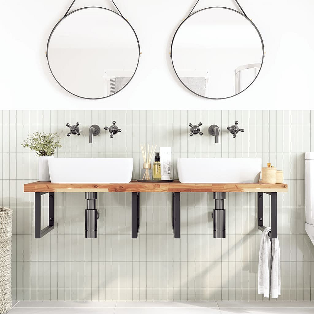 Meuble sous vasque murale acier et bois massif d'acacia FR102582