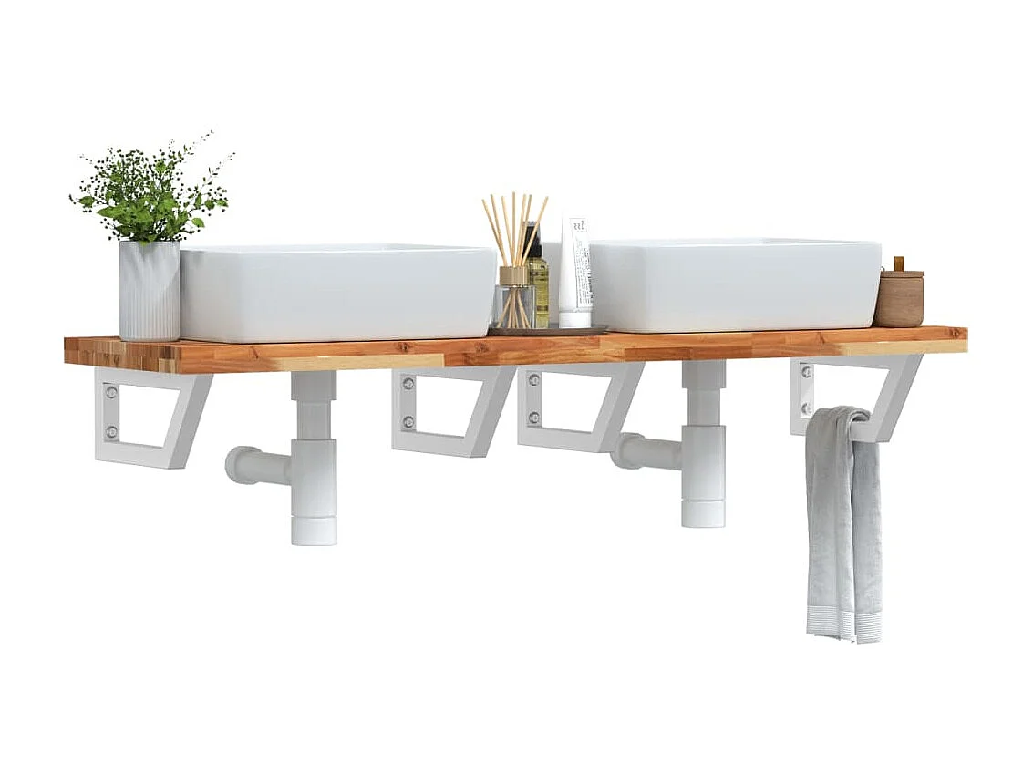 Meuble sous vasque murale acier et bois massif d'acacia FR181123