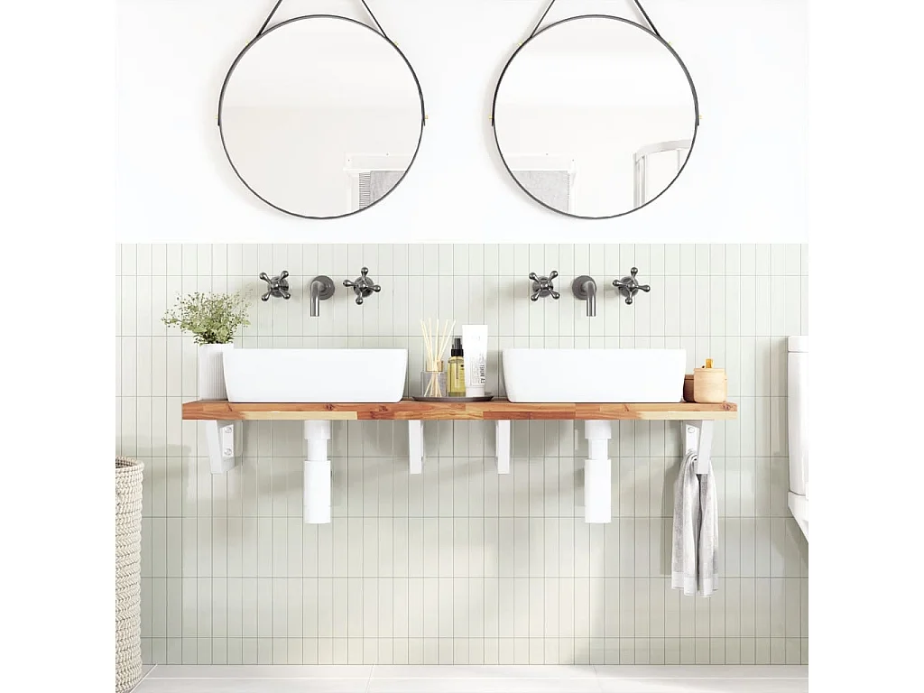 Meuble sous vasque murale acier et bois massif d'acacia FR707997