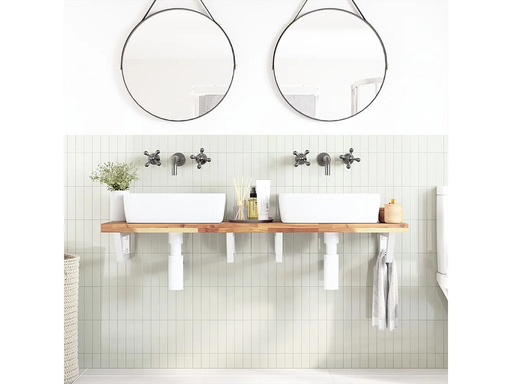 Meuble sous vasque murale acier et bois massif d'acacia FR707997