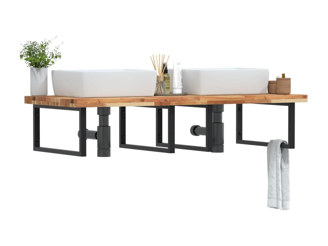 Meuble sous vasque murale acier et bois massif d'acacia FR415718