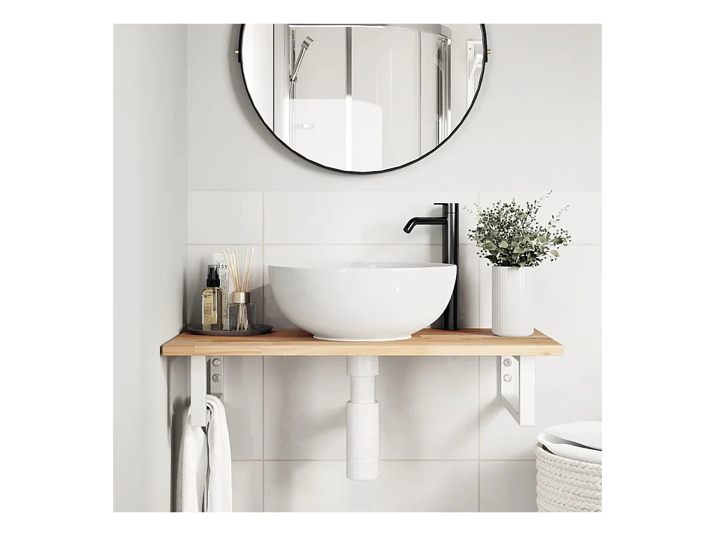 Meuble sous vasque murale acier et bois massif d'acacia FR386385