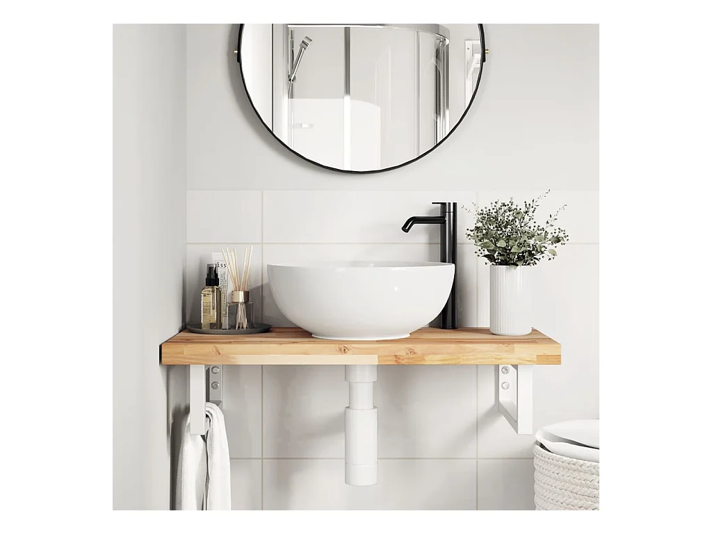 Meuble sous vasque murale acier et bois massif de hêtre FR998538