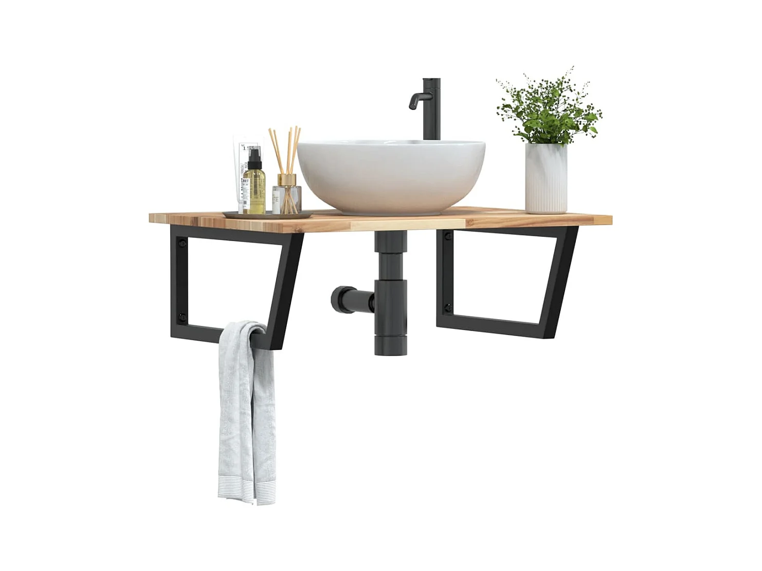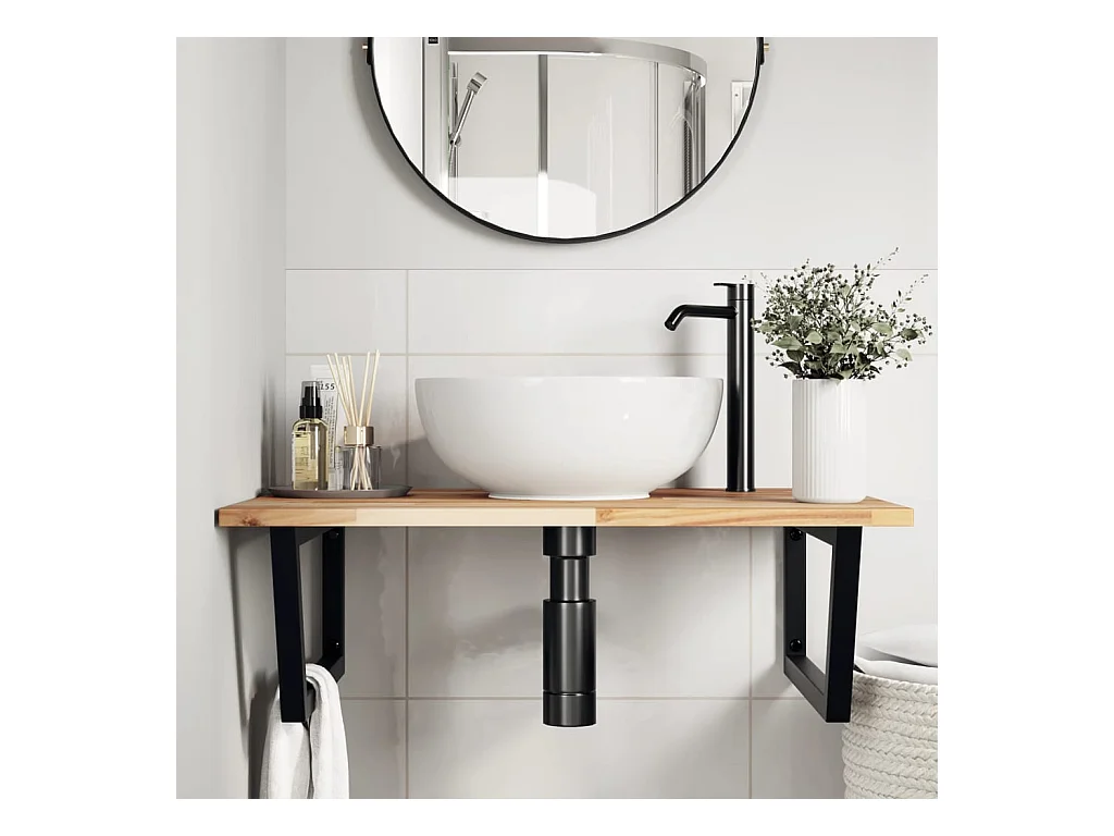 Meuble sous vasque murale acier et bois massif d'acacia FR182607
