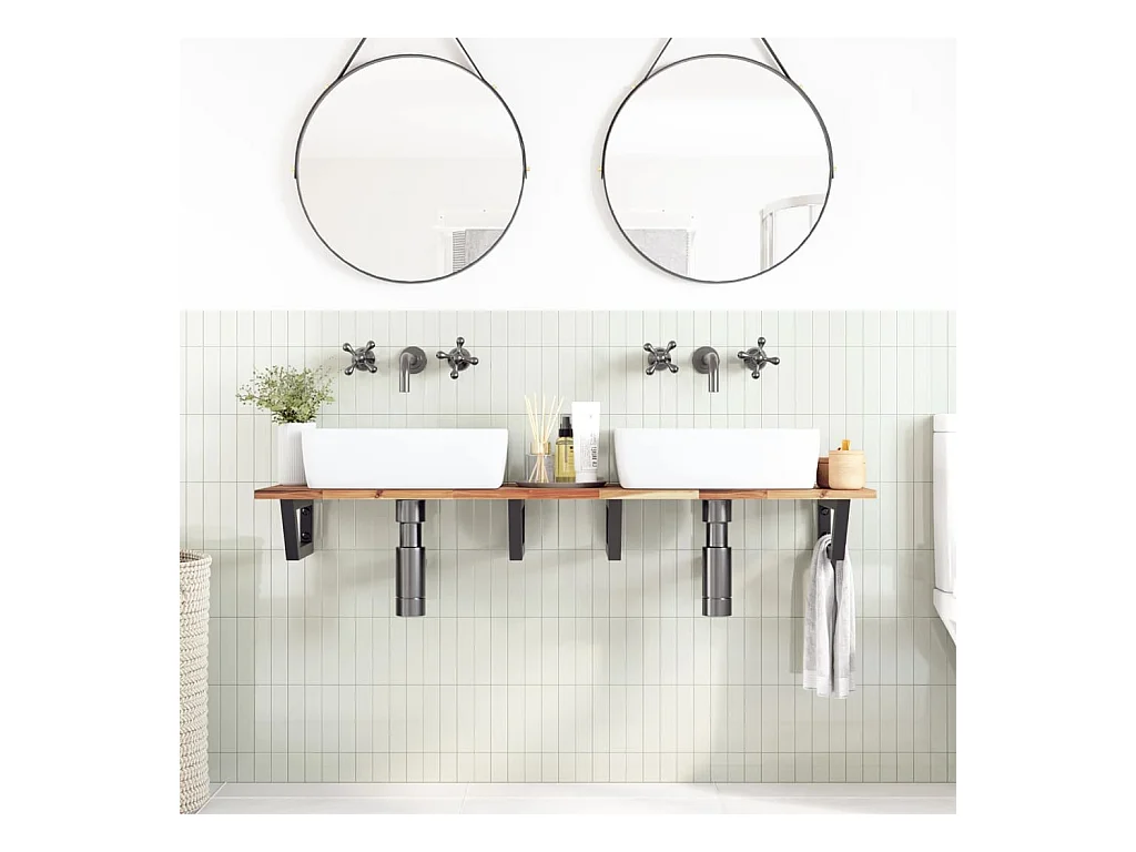Meuble sous vasque murale acier et bois massif d'acacia FR547333