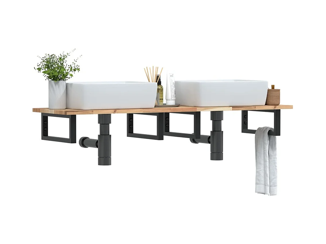 Meuble sous vasque murale acier et bois massif d'acacia FR260818