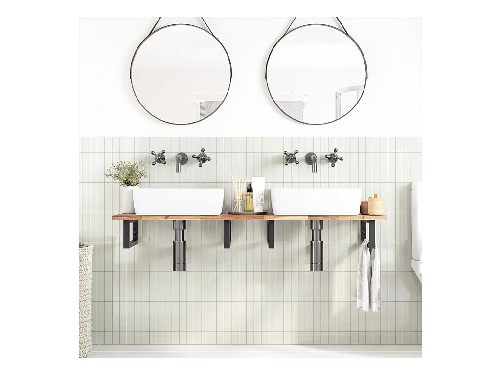 Meuble sous vasque murale acier et bois massif d'acacia FR547333