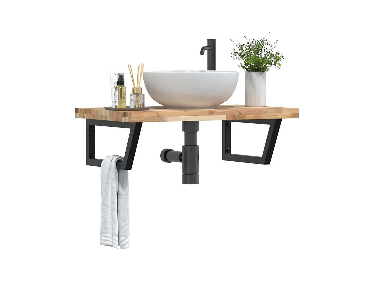Meuble sous vasque murale acier et bois massif d'acacia FR485977