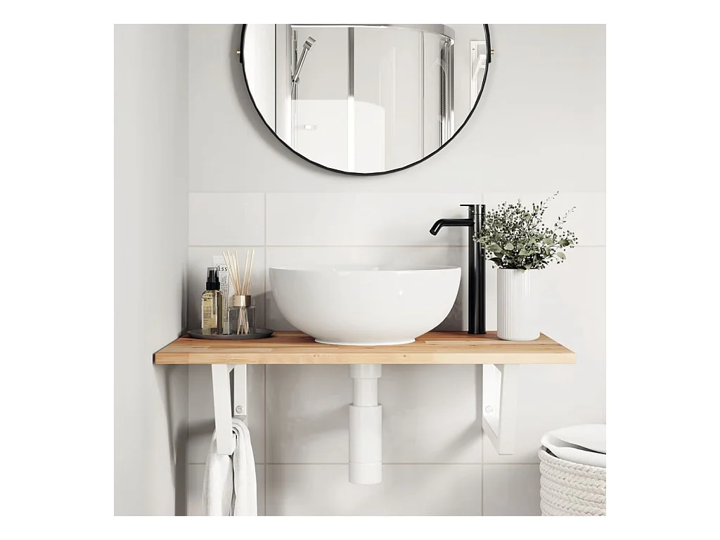 Meuble sous vasque murale acier et bois massif d'acacia FR814586