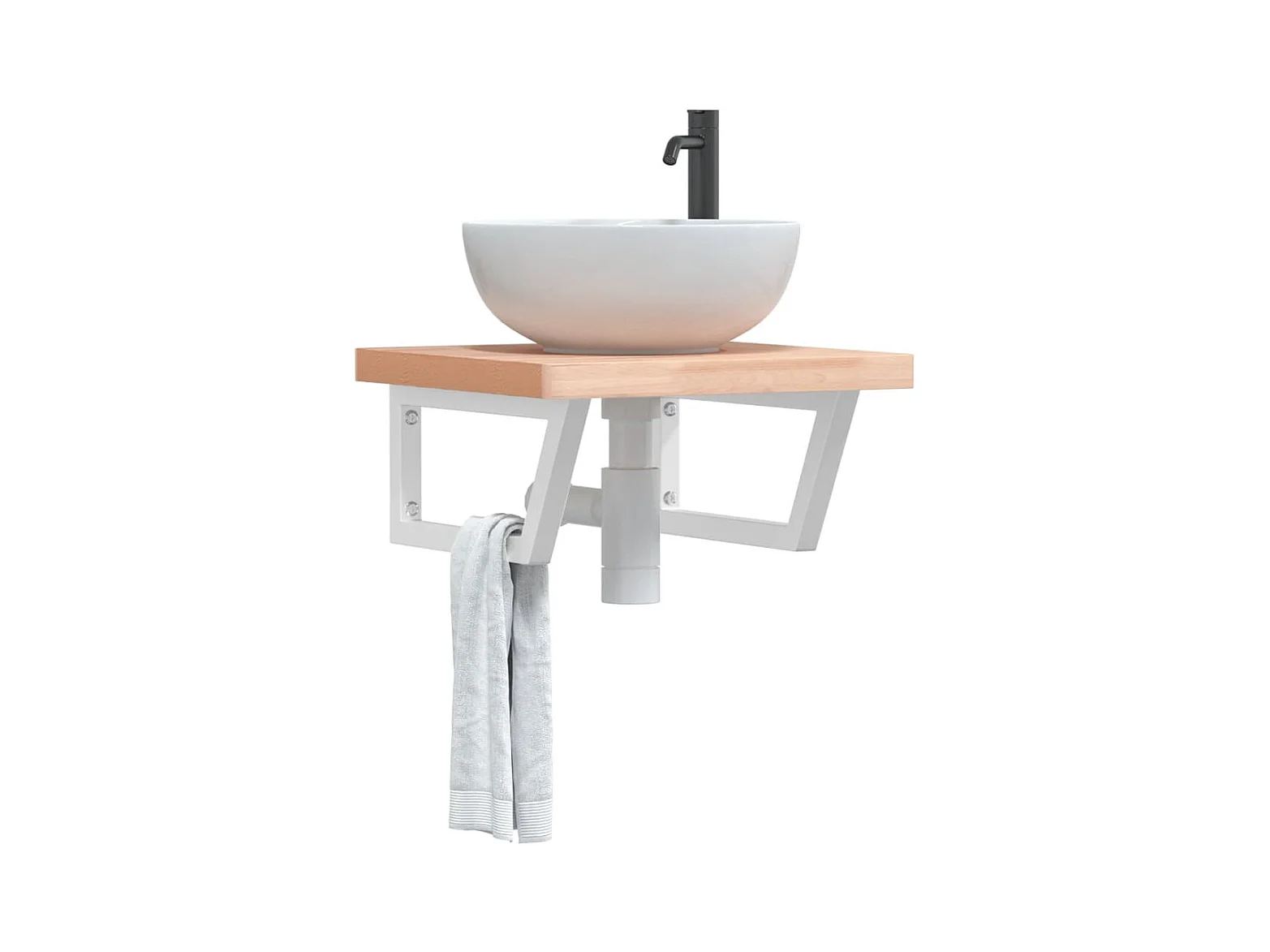 Meuble sous vasque murale acier et bois massif d'acacia FR770761