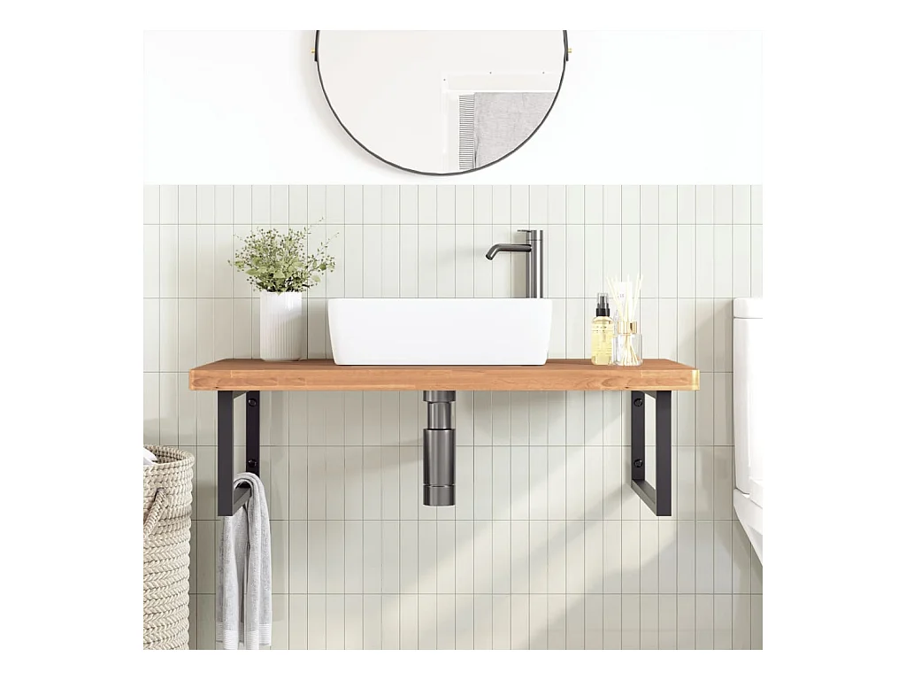 Meuble sous vasque murale acier et bois massif d'acacia FR235349